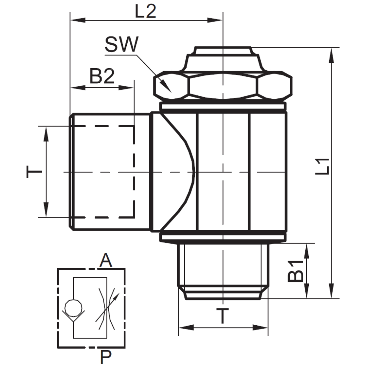 - Zawory dławiąco - zwrotne kątowe z gniazdem gwintowanym, regulacja śrubokrętem typ 80.5081*3