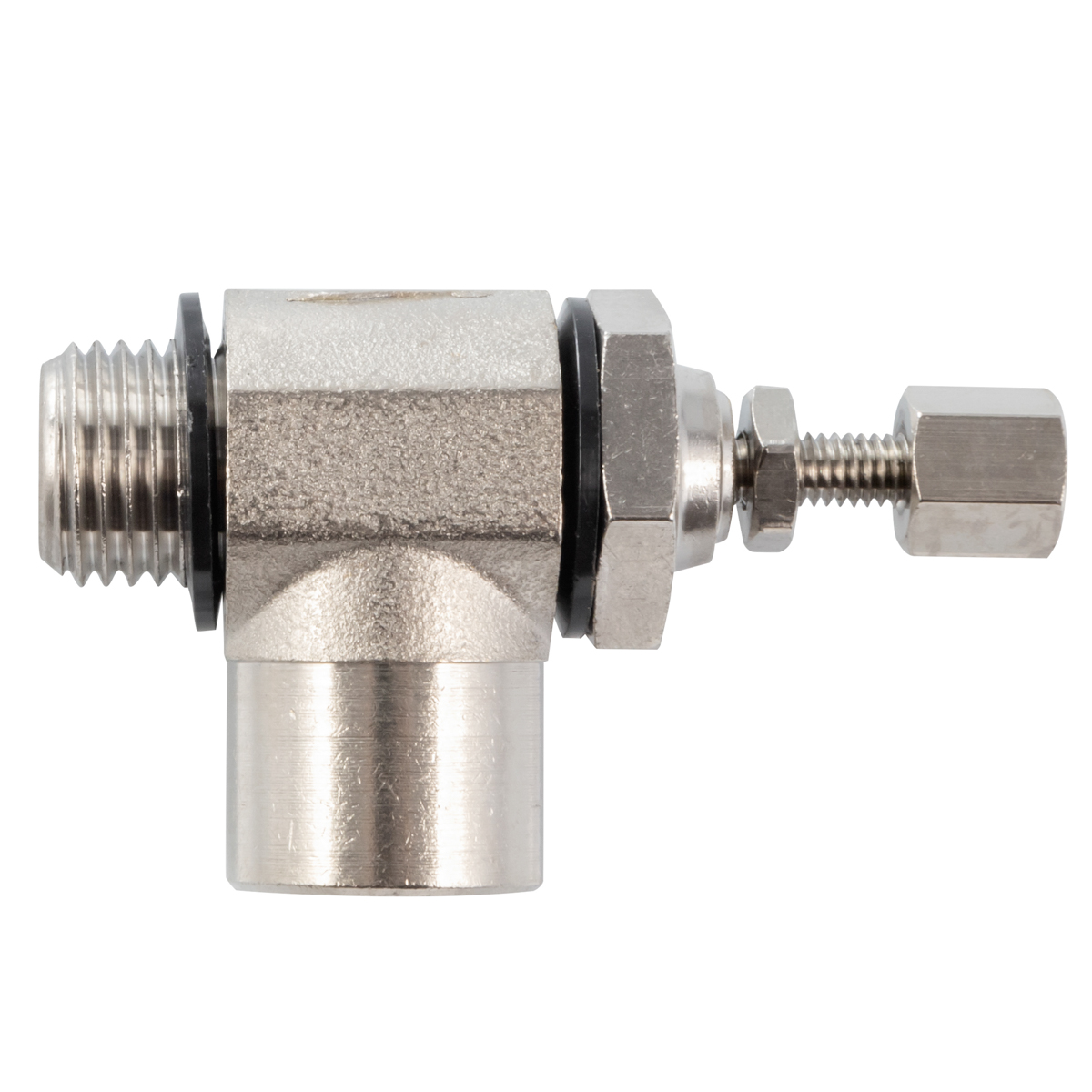 80.5082.18.18 - Zawór dławiąco-zwrotny gwintowany G1/8 GZ- G1/8 GW, reg. pokrętłem, mosiądz niklowany/8957-A/