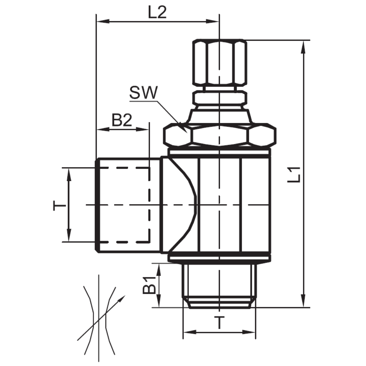 - Zawory dławiące z gniazdem kątowe z gwintem zewnętrznym, regulacja pokrętłem typ 80.5092*3