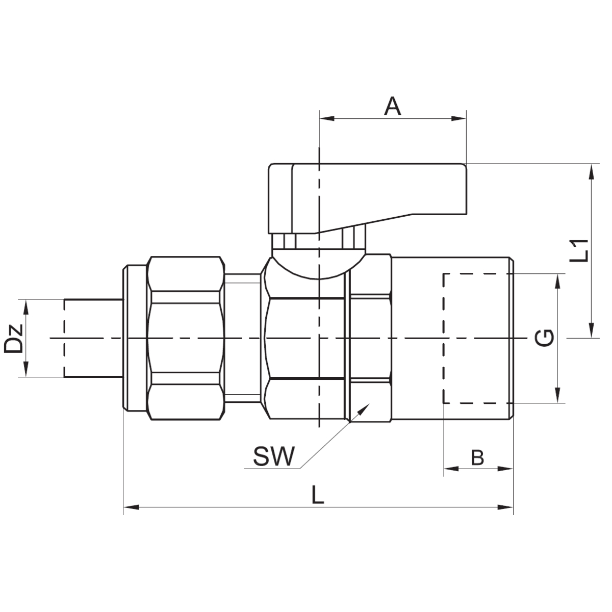 80.6430.3812 - Zawór kulowy mini z gwintem wewnętrznym G3/8 do przewodu D12 - CU,PA, PTFE 6430