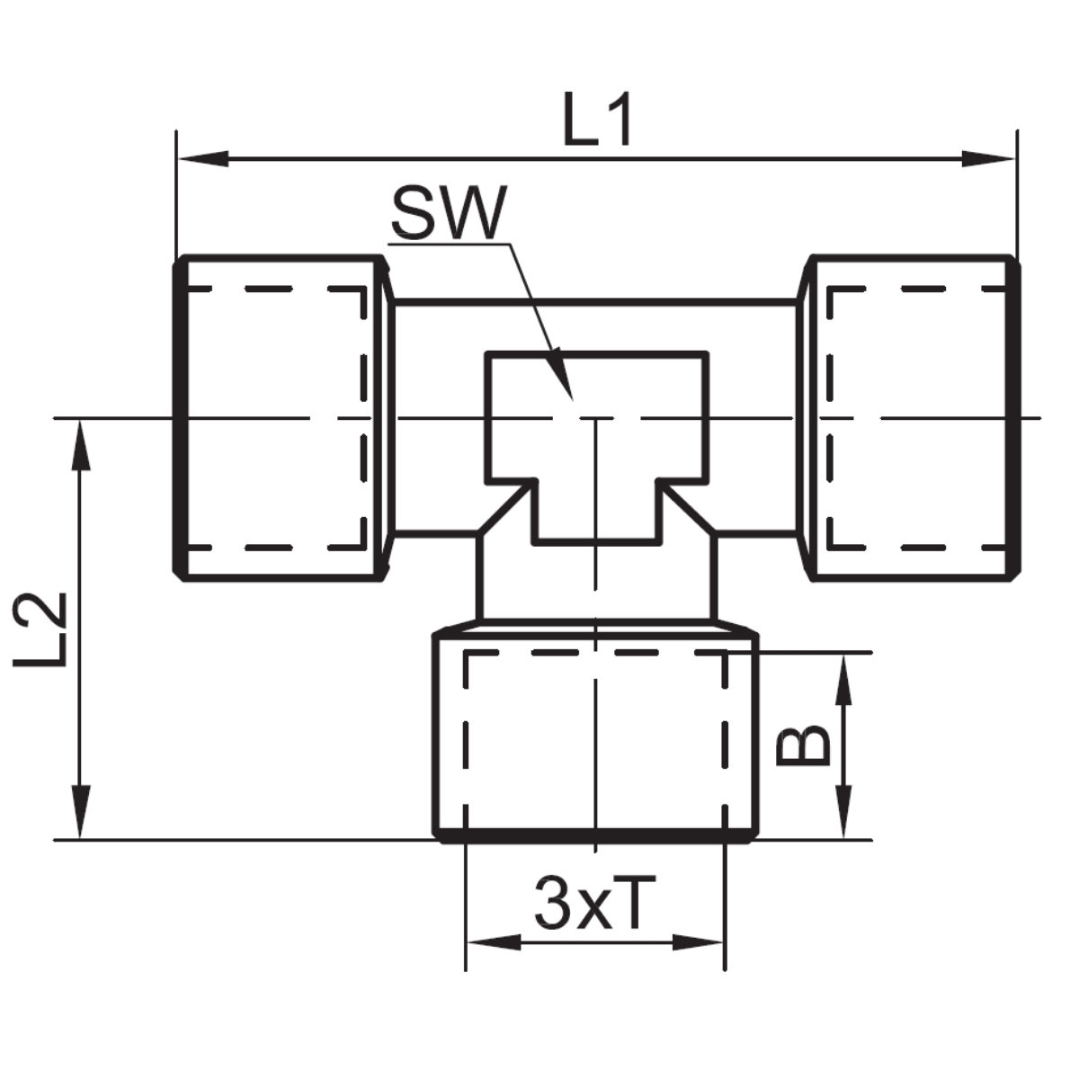 81.0201.14 - Trójnik z gwintem wewnętrznym 3xG1/4 62400-A, 14MPa,-20+225, stal nierdzewna 316L