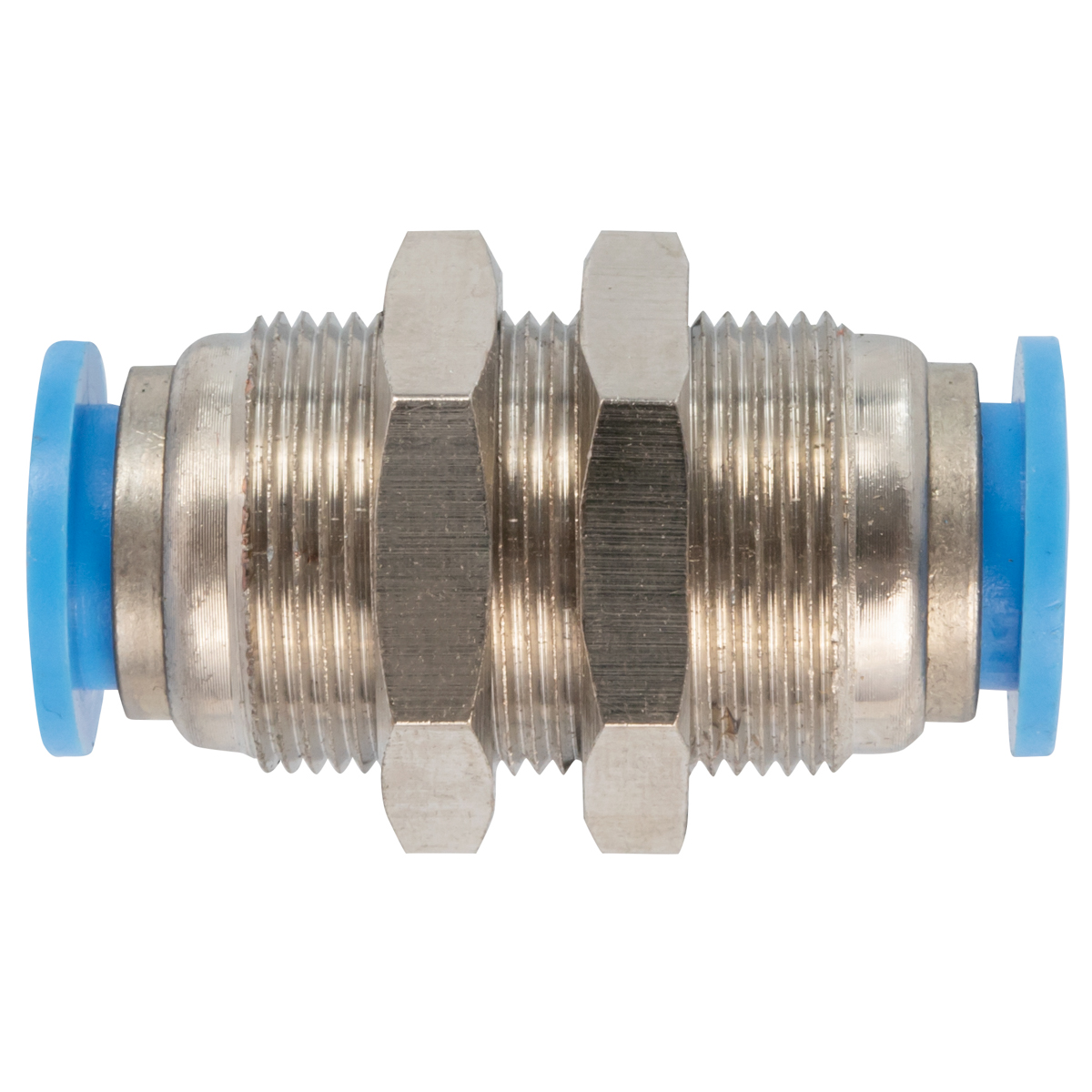84.0050.08.08 - Złączka pneumatyczna wtykowa prosta grodziowa M16 do przewodu fi 8 mm, mosiądz niklowany