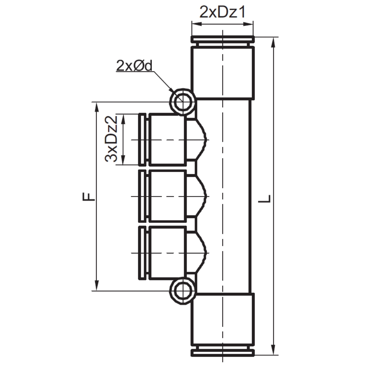 84.0303.0806 - Kolektor wtykowy redukcyjny rozdzielacz do przewodu 8-6-6-6-8 mm, tworzywo sztuczne