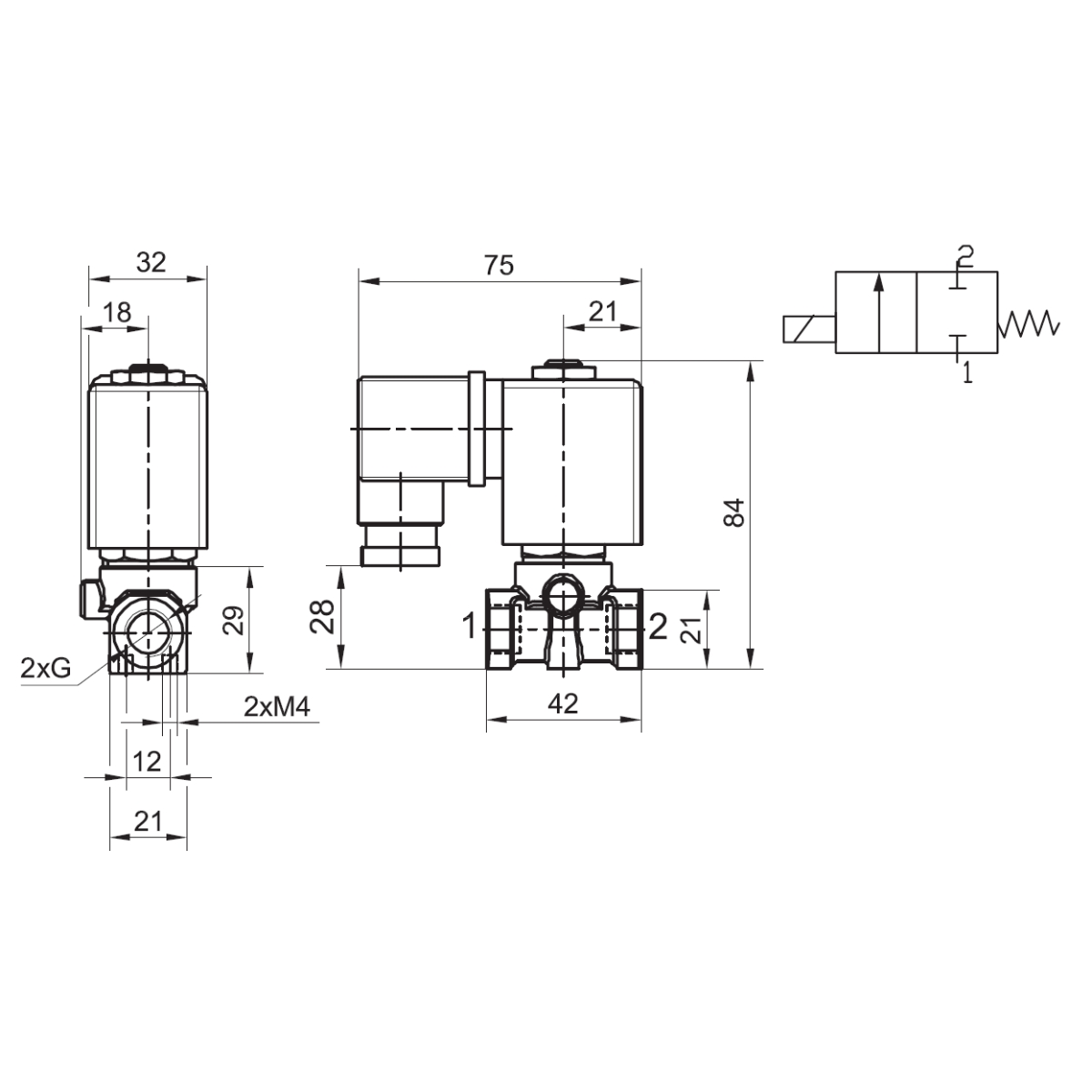 86.0407.14NZJE2 - Zawór elektromagnetyczny bezpośr. 2/2 G1/4 NC normalnie zamknięty, EPDM, 0-6 bar, 230V AC, 2VE4F