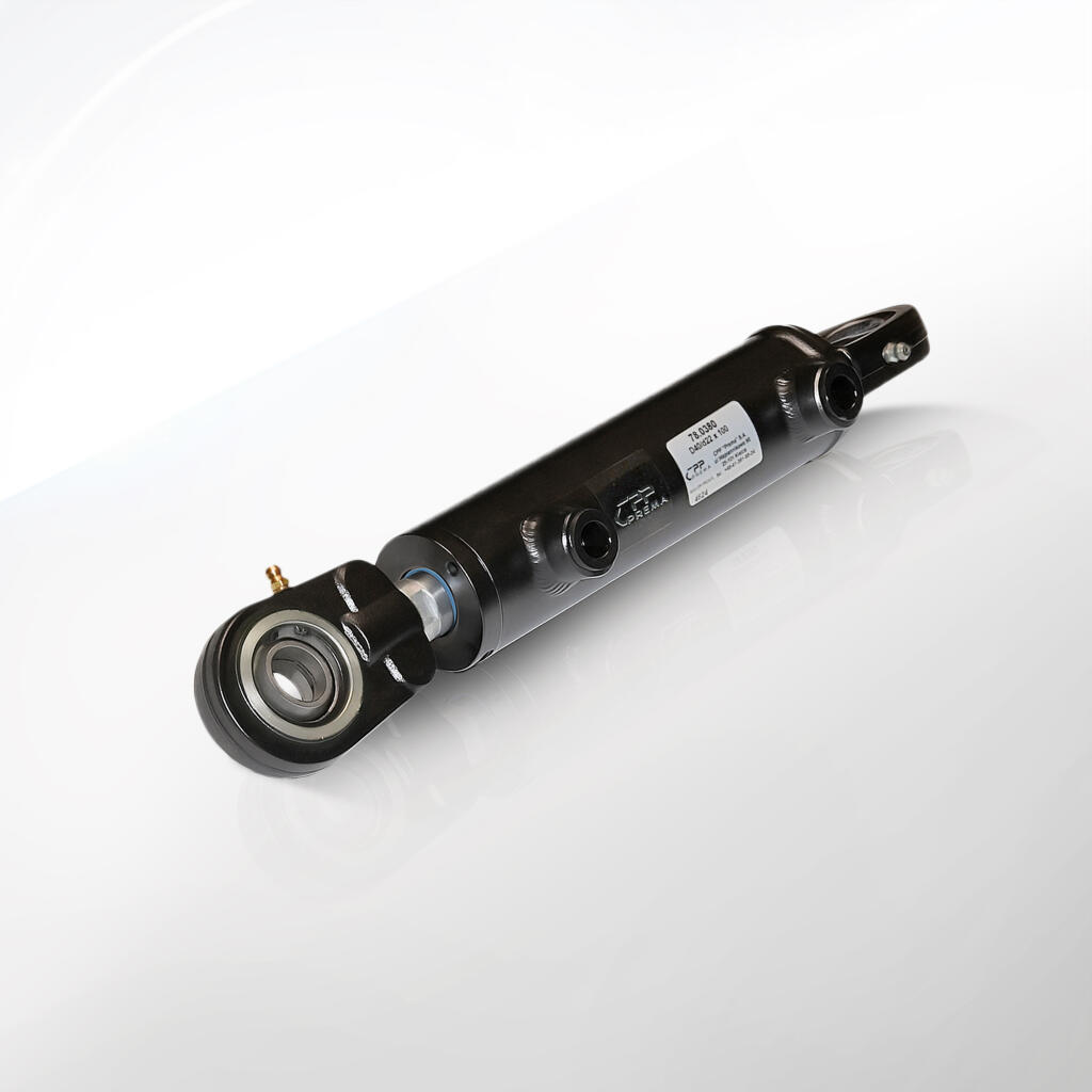 P5 UCN2 (ucho dna z łożyskiem przegubowym): Łożysko przegubowe (kuliste) działa podobnie, jednak inaczej rozkłada naprężenia i pozwala na inny zakres pracy kątowej. Zazwyczaj jest preferowane w aplikacjach, gdzie ruch kątowy jest bardziej przewidywalny, a obciążenia boczne nie są tak duże, jak w przypadku wersji wahliwej.