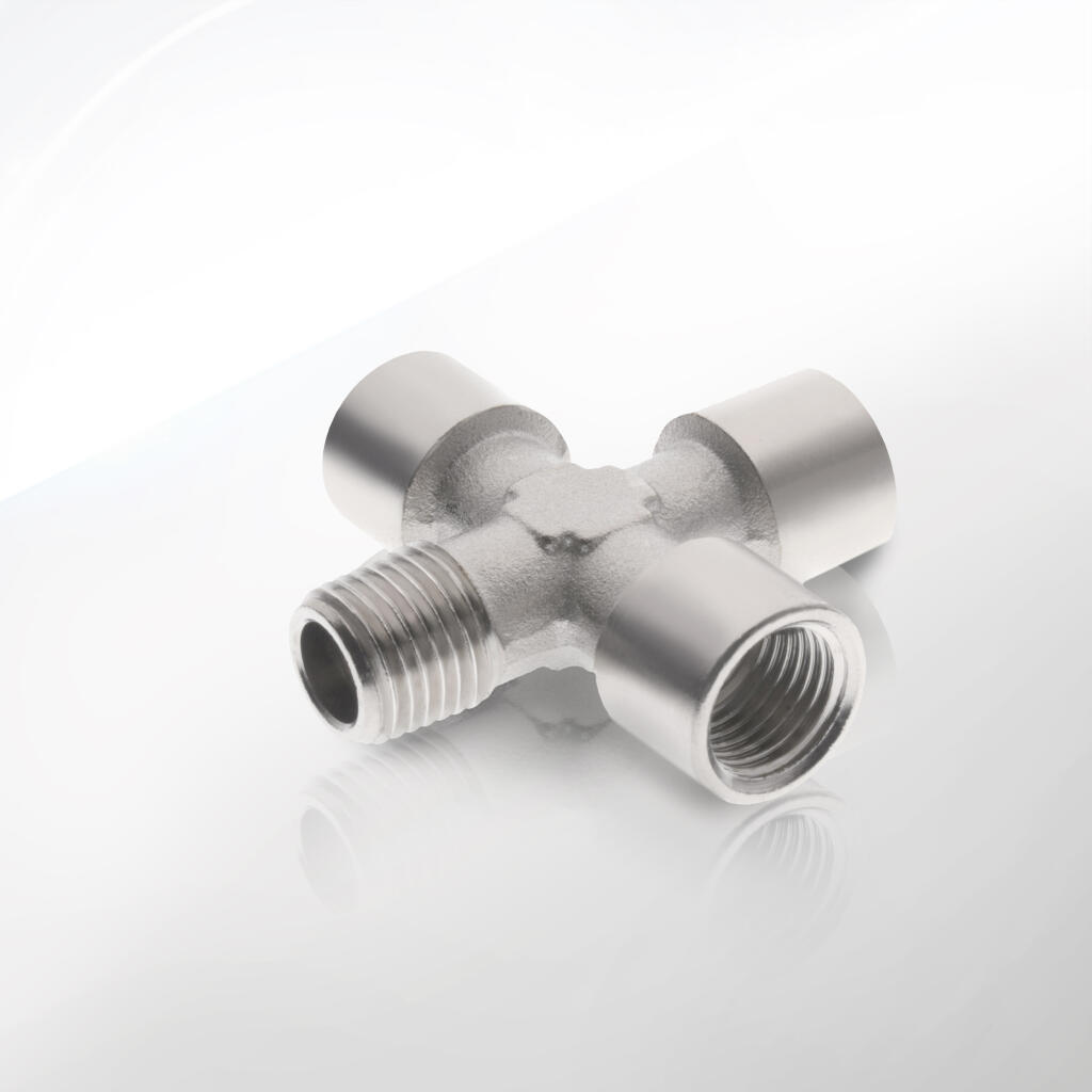 Wszystkie czwórniki posiadają gwinty cylindryczne BSPP zgodne z ISO 228-1, formowane z tolerancją ±0,05 mm, co gwarantuje szczelność i łatwość montażu. Produkcja odbywa się w nowoczesnym zakładzie z pięcioosiowymi centrami CNC, zapewniającymi współosiowość portów i precyzję wymiarową. Każdy element przechodzi rygorystyczną kontrolę jakości: