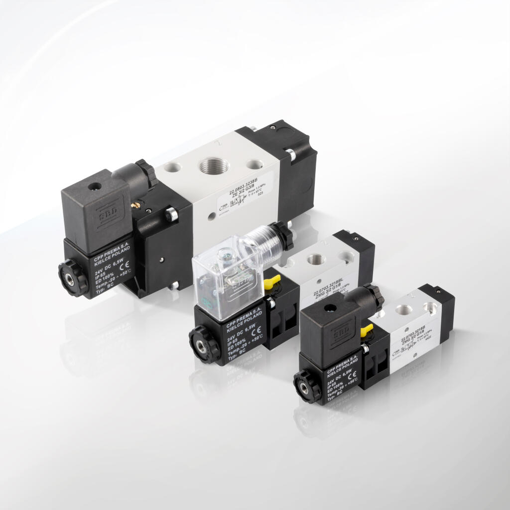 Elektrozawory CPP PREMA to nowoczesne rozwiązania stosowane w systemach automatyki pneumatycznej. Urządzenia te służą do sterowania przepływem mediów. Działają w układzie 3/2, co oznacza, że zawierają trzy porty i oferują dwa stany przełączania. Oferta CPP PREMA obejmuje wiele wariantów. Znajdują się w niej zarówno elektrozawory normalnie otwarte (NO), jak i normalnie zamknięte (NZ). Produkty te mogą pracować z jedną cewką w trybie monostabilnym. Część modeli wyposażona jest także w dodatkowy sygnał sterujący. W ofercie znajdują się również rozwiązania z dwoma cewkami, w których stosuje się mechanizm bistabilny.