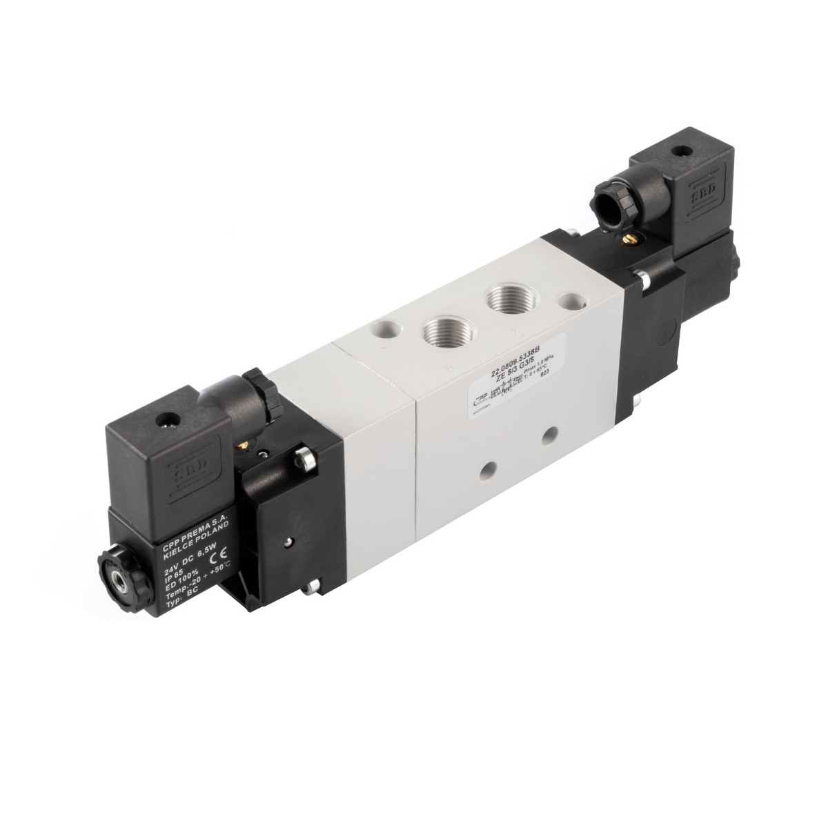 Elektrozawór pneumatyczny rozdzielający ZDE 5/3 G1/2 CO centralnie otwarty cewki 24V DC 6,5W