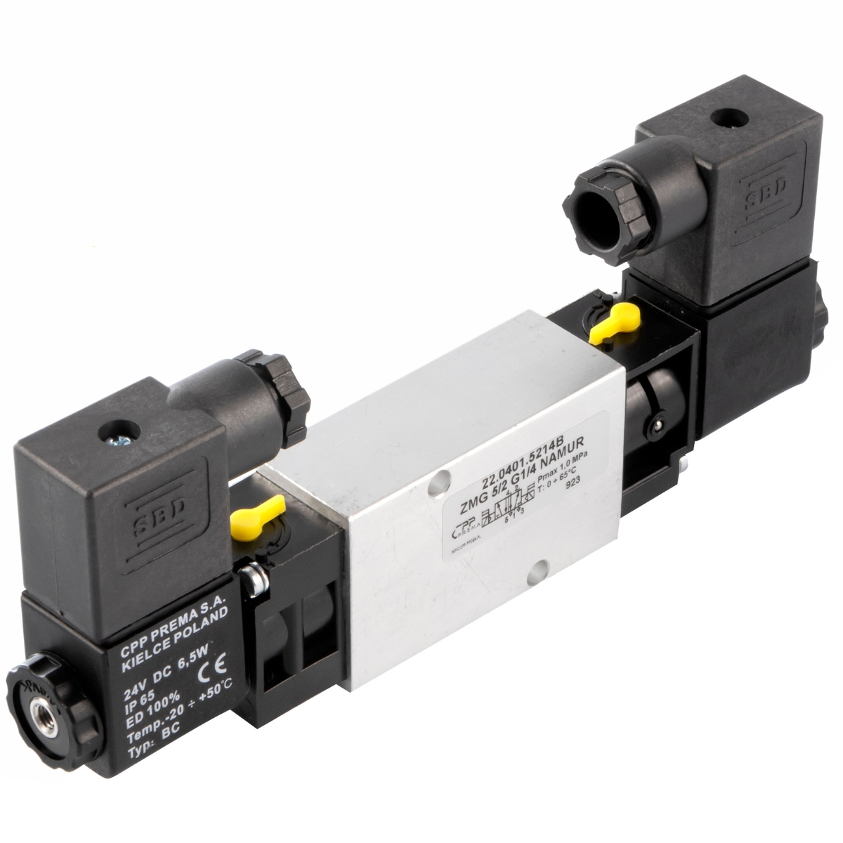 Elektrozawór pneumatyczny ZMG NAMUR 5/2 G1/4 monostabilny, cewka z diodą LED 230V AC 6,5VA