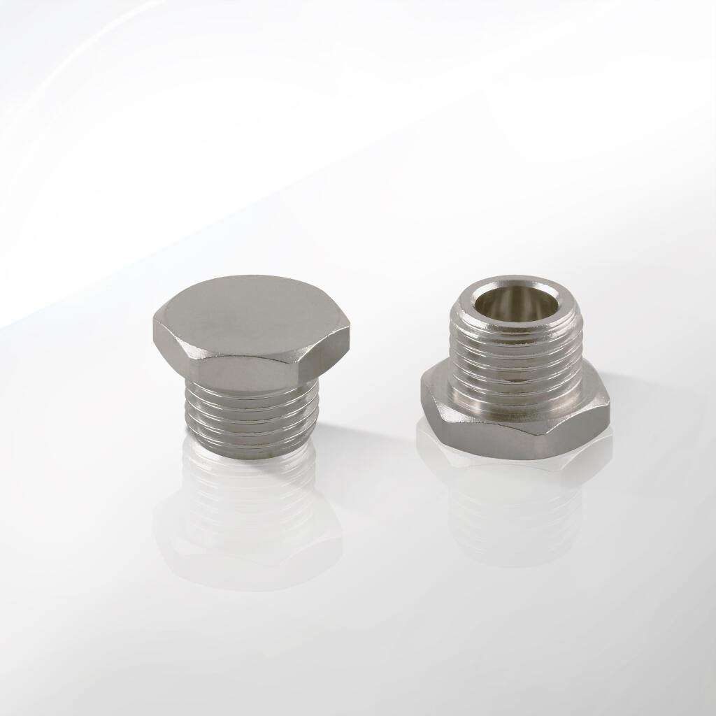 80.0131 – korki nakręcane z gwintem zewnętrznym, mosiądz niklowany, do zamykania standardowych przyłączy.