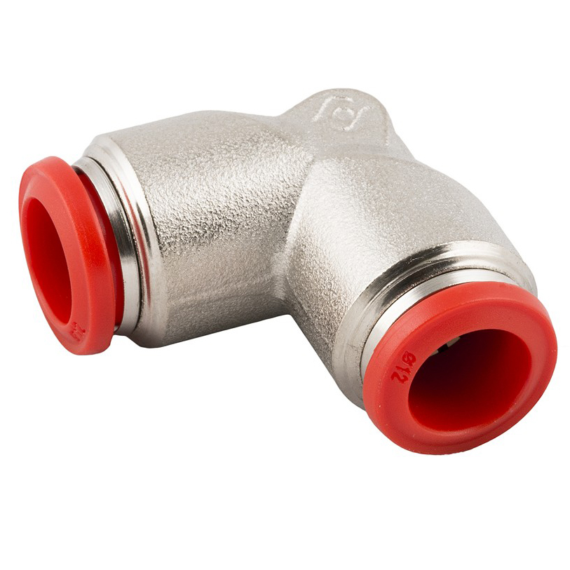 Złączka wtykowa kątowa do przewodu fi 12 mm, mosiądz niklowany