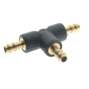 Łącznik karbowany trójstronny typu T D 2, choinka do węża fi 2 mm, mosiądz, korpus tworzywo