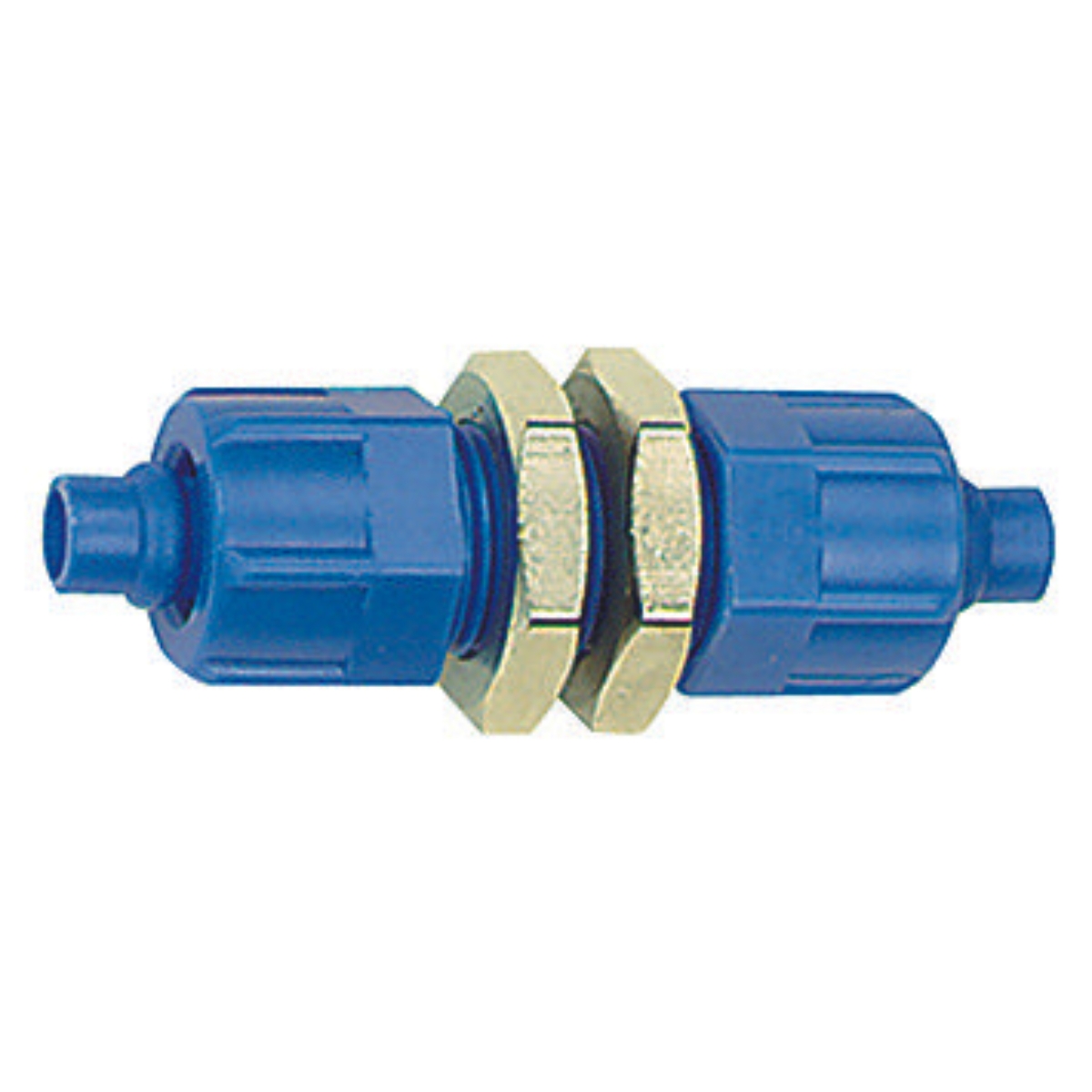 Złączka skręcana grodziowa prosta M10x1 do przewodu 6/4, ciśnienie 10 bar, niebieski / POM /