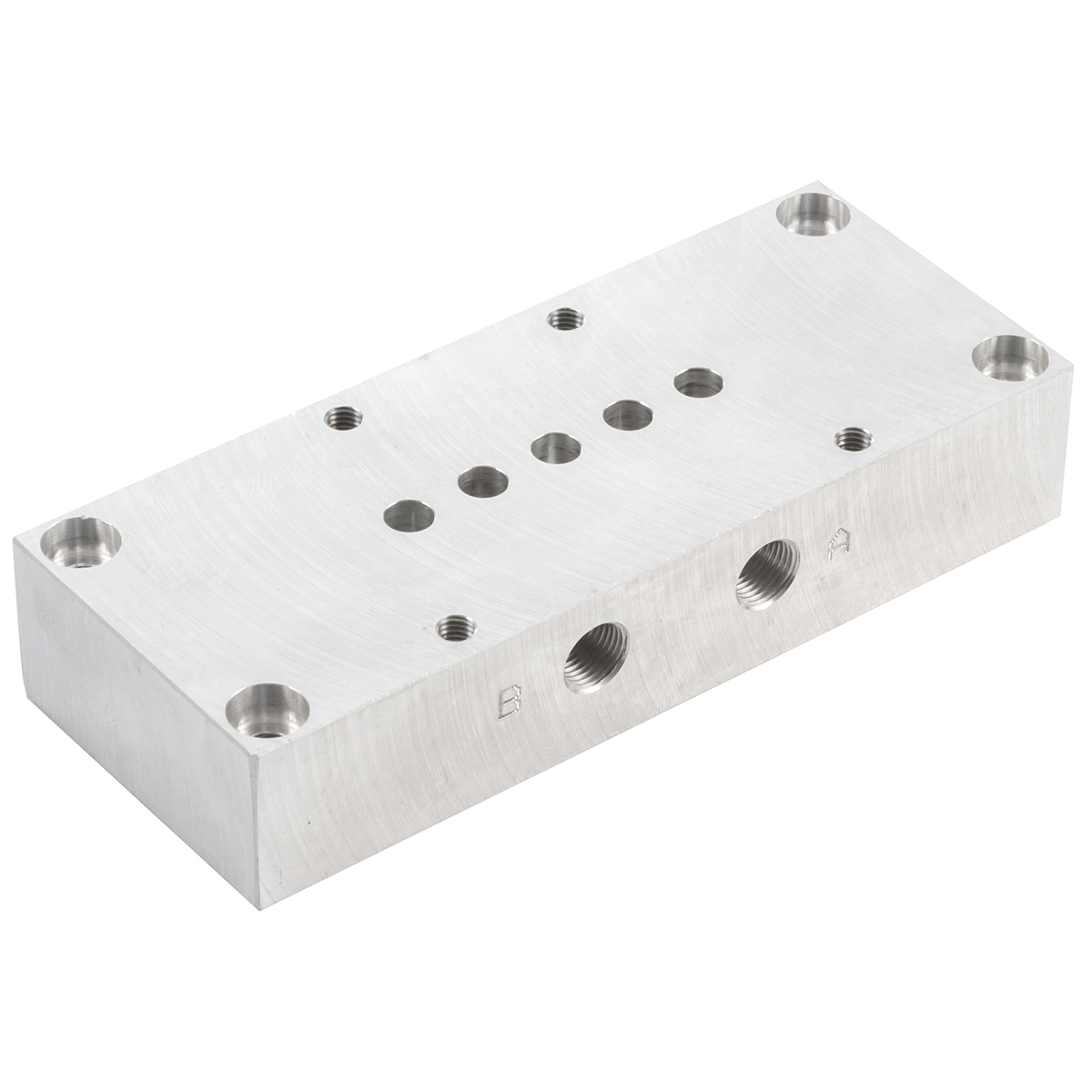 We wnętrzu płyty przyłączeniowej poprowadzone są kanały, kierujące powietrze z portu P do zaworu, a następnie z zaworu do portów A, B, R (w modelach 3-drogowych bądź 5-drogowych). Materiałem jest ten sam metal (aluminium, stal), często frezowany lub odlewany w formach. Powierzchnie kanałów powinny być gładkie, bez nadlewek czy wżerów, aby uniknąć turbulencji i spadków ciśnienia. Dobór grubości ścianek gwarantuje bezpieczeństwo przy ciśnieniu do 10 bar. Dodatkowo, wloty i wyloty są fazowane, by ułatwić wkręcanie złączek. Producent dba też o równe ułożenie gwintów, co przyśpiesza montaż i zapobiega nietrzymaniu się złączek w jednej osi.