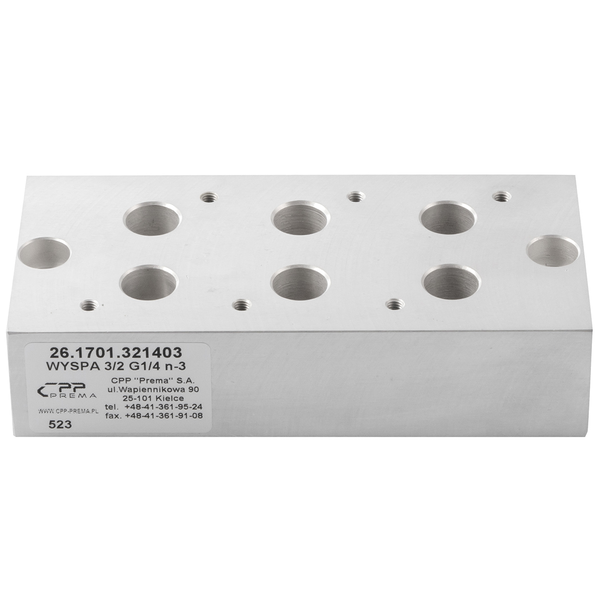 Wyspa zaworowa 3-dr. G1/4 n-10 do zaworów ZEM G1/4 3/2, jednoelementowa