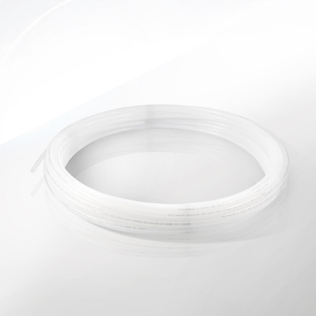 Przewody pneumatyczne do złączek wtykowych kalibrowane oferowane przez CPP PREMA to precyzyjnie wykonane węże dedykowane do systemów przesyłu sprężonego powietrza, cieczy oraz gazów technicznych. Charakteryzują się wysoką dokładnością wymiarową, gładką powierzchnią oraz kompatybilnością z szerokim zakresem złączek typu push-in. W skład tej kategorii wchodzą cztery główne grupy materiałowe: poliamid (PA 12 PHL), polietylen (PE), poliuretan (PU) oraz politetrafluoroetylen (PTFE). Każdy typ został zaprojektowany z myślą o konkretnej aplikacji przemysłowej, zapewniając optymalną elastyczność, odporność chemiczną i stabilność wymiarową.