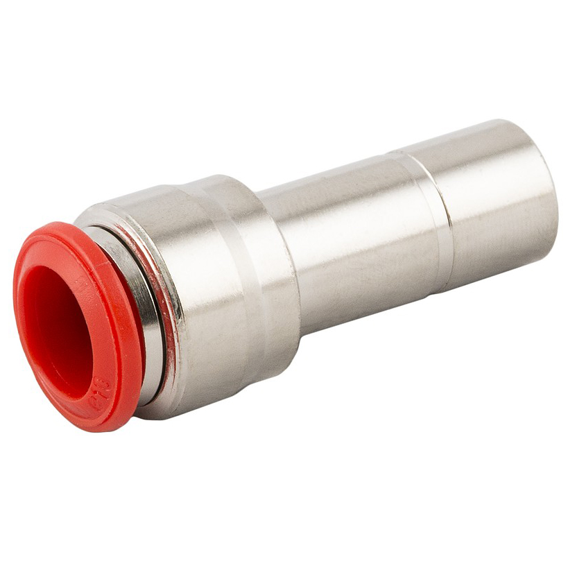Redukcja do złączki wtykowej, wtyk fi 12 mm do przewodu fi 10 mm, mosiądz niklowany