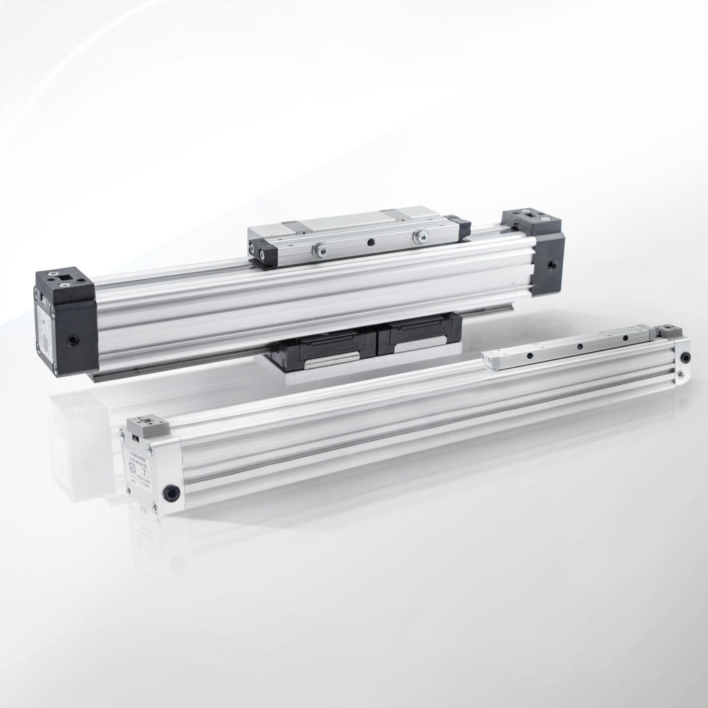 W siłownikach beztłoczyskowych konstrukcja różni się od klasycznych – tłok porusza się wewnątrz wydłużonego profilu, a z nim zintegrowany jest wózek jezdny na zewnątrz. Istnieją dwa główne typy: z połączeniem mechanicznym (przez szczelinę wzdłuż cylindra) albo z połączeniem magnetycznym (tzw. siłownik bezszczelinowy). CPP PREMA oferuje serię rodless prawdopodobnie w wariancie ze szczeliną i taśmą uszczelniającą. Szczelność zapewnia tutaj elastyczna taśma lub listwa uszczelniająca biegnąca wzdłuż cylindra, która jest odginana przez przechodzący tłok z suwakiem, a następnie zamyka się za nim, utrzymując uszczelnienie. Dodatkowo często jest druga, zewnętrzna taśma ochronna. Dzięki temu rozwiązaniu wyciek powietrza jest minimalny – siłownik zachowuje większość sprężonego powietrza, choć przy bardzo wysokich prędkościach może być słyszalny delikatny szum ucieczki przez szczelinę. Wersje magnetyczne zamiast szczeliny mają tłok z magnesem, a wózek zewnętrzny trzymany jest siłami magnetycznymi – tam w ogóle nie ma przelotu przez ściankę cylindra, więc szczelność jest pełna, ale maksymalne siły są ograniczone (magnes może się rozłączyć przy przeciążeniu). W siłownikach beztłoczyskowych PREMA typu mechanicznego wózek jest najczęściej prowadnicą obejmującą profil, czasem z rolkami lub ślizgami zmniejszającymi tarcie. Całość utrzymuje wózek na miejscu i przenosi siłę z tłoka. Taki wózek można dodatkowo obciążyć – niektóre serie (np. ZK, ZKS) mają wzmocnione wózki z większą ilością śrub mocujących i dłuższymi prowadnicami, co pozwala przenosić większe momenty i siły boczne. Podsumowując: siłowniki beztłoczyskowe są wystarczająco szczelne do typowych zastosowań (straty powietrza są minimalne, w granicach tolerancji), a wózek utrzymuje się mechanicznie na profilu, sprzężony z tłokiem – dzięki temu możemy uzyskać długie i płynne posuwy tam, gdzie tradycyjny siłownik tłoczyskowy się nie zmieści.Czy mogę użyć siłownika pneumatycznego do precyzyjnego pozycjonowania (np. zastąpić serwosiłownik)?
