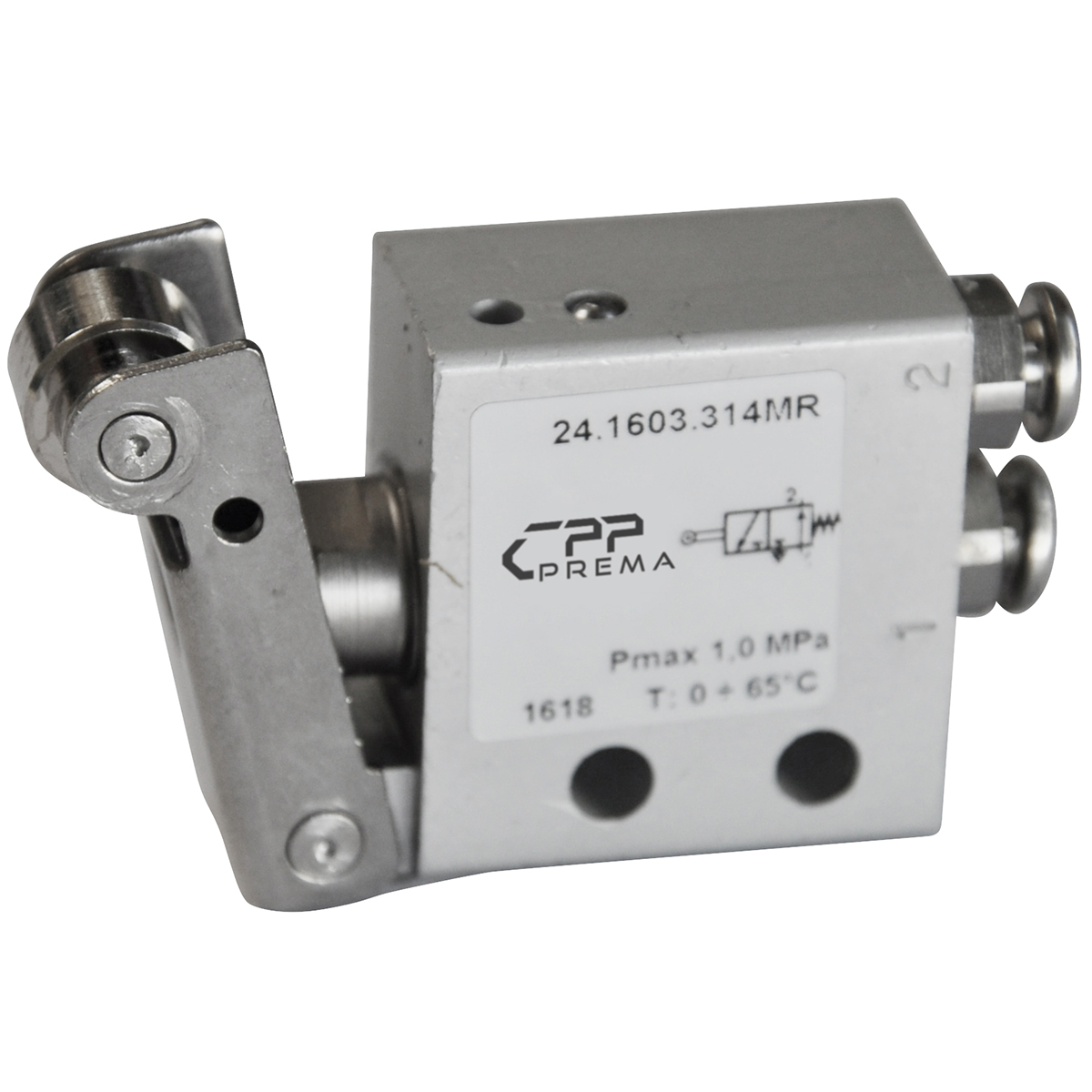 Zawór mechaniczny 3/2 NO normalnie otwarty, dźwignia z rolką zasilanie boczne fi 4 mm