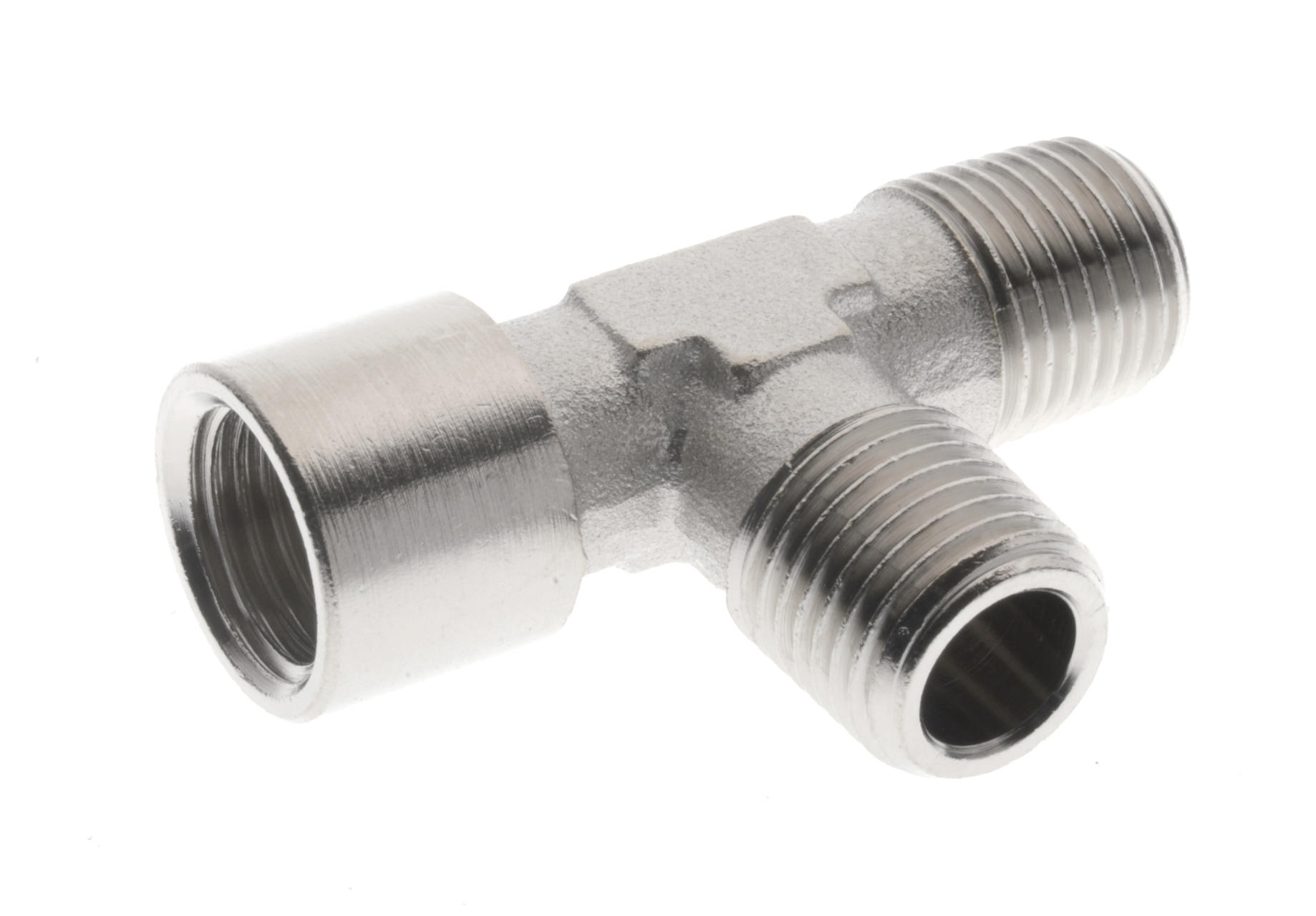 Trójnik gwintowany typu T WZZ 2 x G1/8 GZ - G1/8 GW, mosiądz niklowany