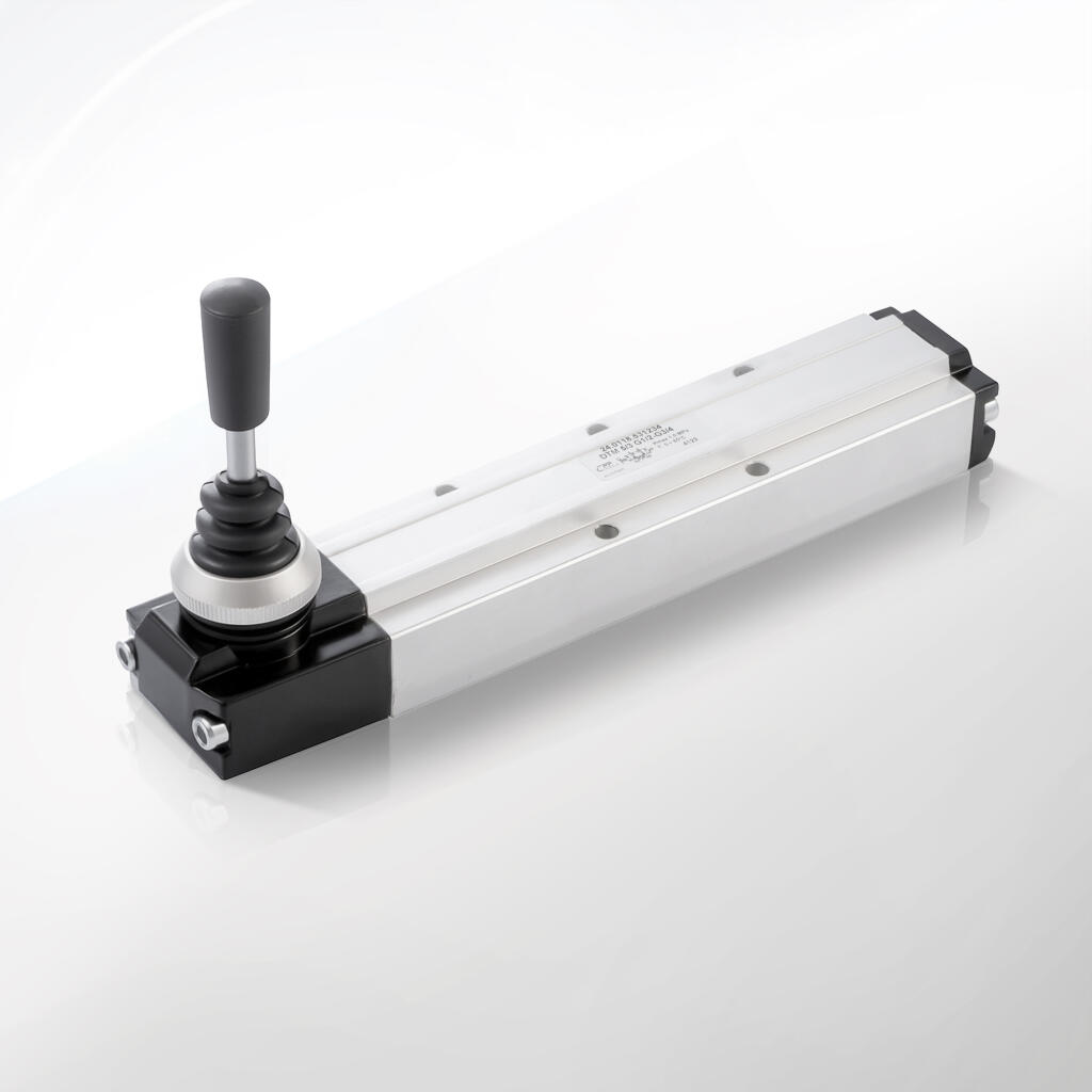 Dźwignia powstaje z anodowanego aluminium lub stali nierdzewnej. Jej długość 60 mm i ergonomiczny kształt pozwalają na obsługę jedną ręką, z siłą nieprzekraczającą 5 N. W wersjach ze sprężynami drut ze stali sprężynowej 1.4310 zapewnia powrót do pozycji neutralnej z siłą 1,5 N przy skoku 5 mm. Warianty bez sprężyn wyposażamy w mechaniczny ogranicznik, który blokuje dźwignię w skrajnych pozycjach.