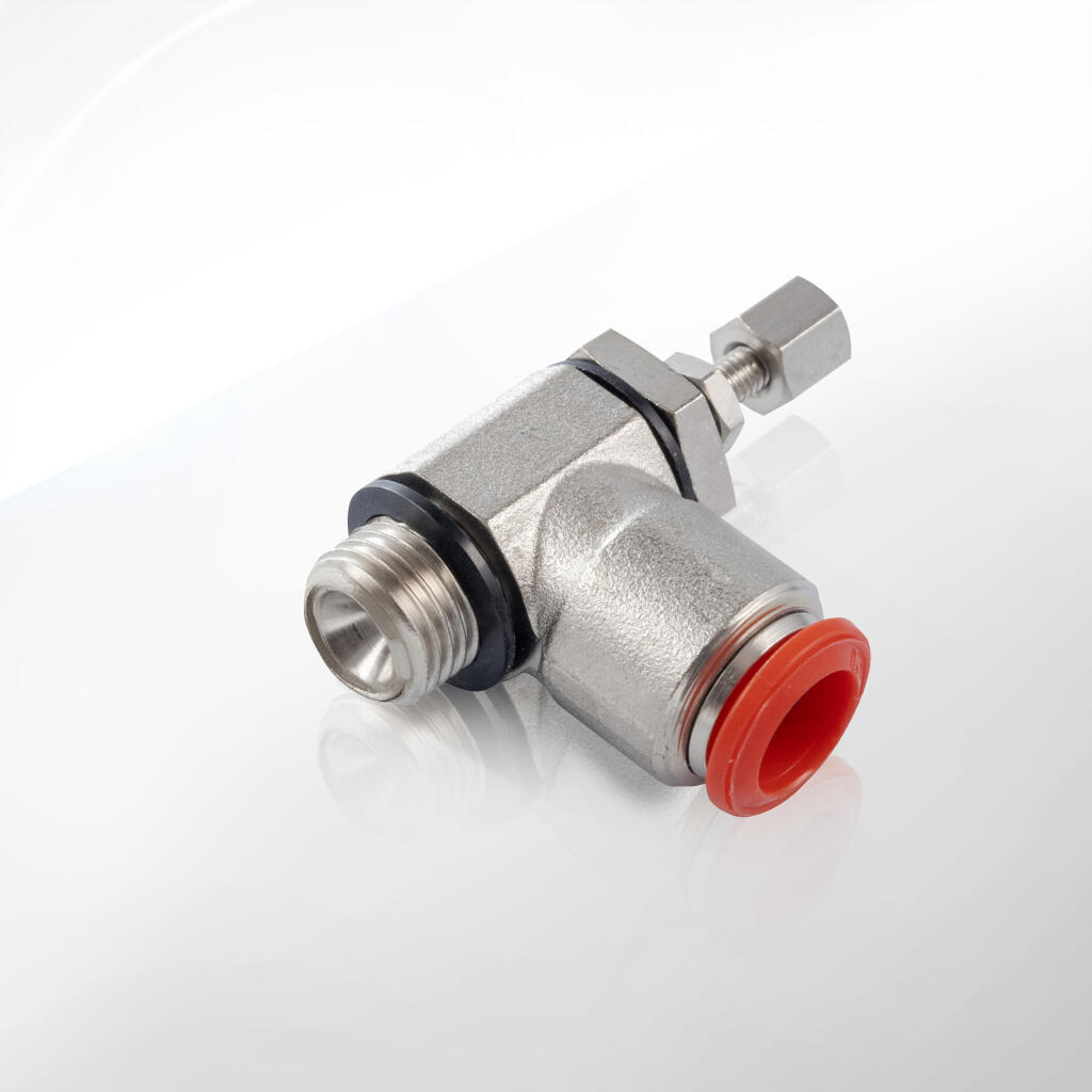 Zawory dławiące mają za zadanie kontrolować i ograniczać przepływ powietrza, co przekłada się na dokładne sterowanie prędkością działania siłowników pneumatycznych lub innych elementów wykonawczych. Kątowa konstrukcja zwiększa wygodę montażu i pozwala na efektywniejsze wykorzystanie przestrzeni. Gwint zewnętrzny (np. G1/8, G1/4, G3/8, G1/2 w zależności od modelu) umożliwia szybkie wkręcenie zaworu w istniejące układy, co znacząco ułatwia przebudowę czy modernizację systemu.