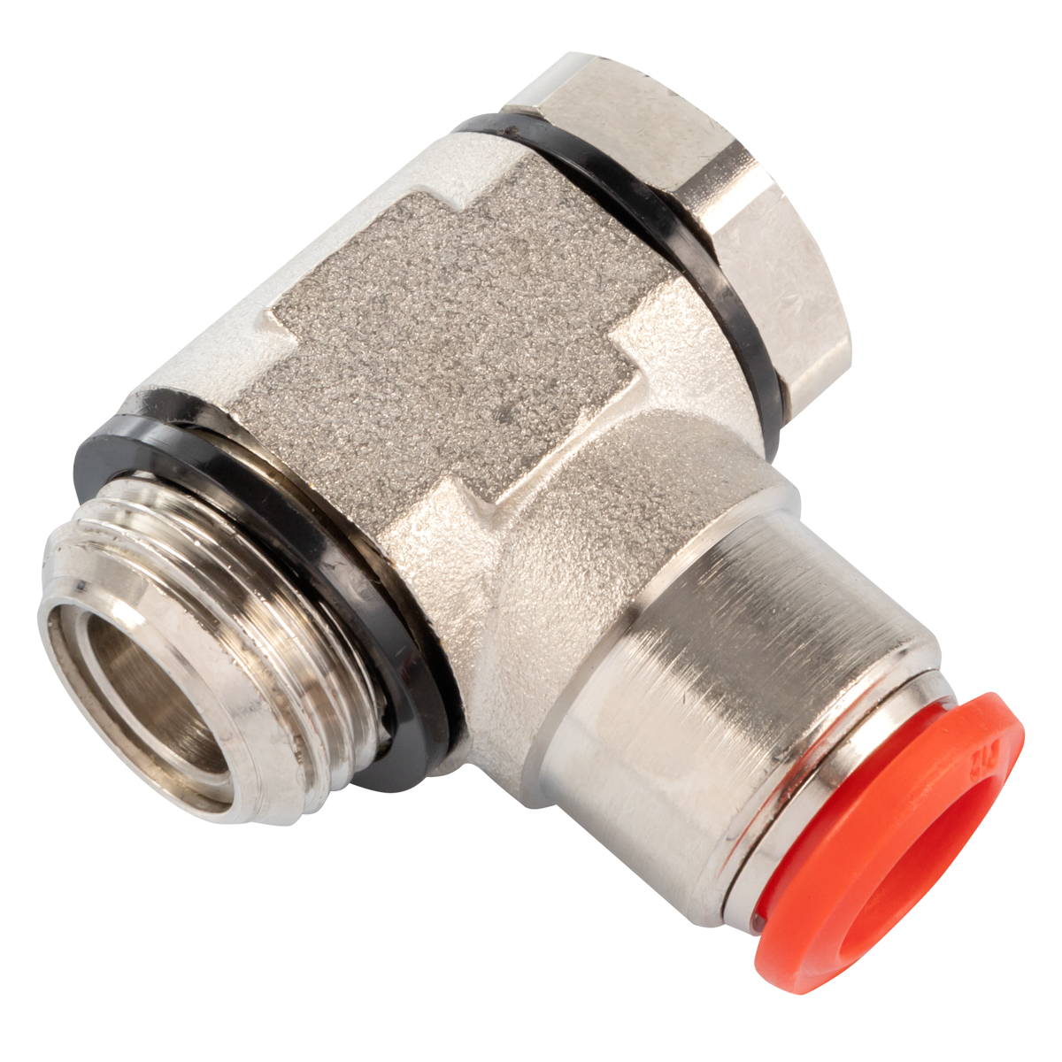 W tym modelu, przy gwincie G1/8, dostępna jest już większa średnica fi 8 mm, co zwiększa możliwy przepływ sprężonego powietrza, przydatne w układach o wyższym zapotrzebowaniu na energię pneumatyczną.Zawór dławiący wtykowy z regulacją śrubokrętem G1/4 fi 10 mm, mosiądz niklowany /8973-A/