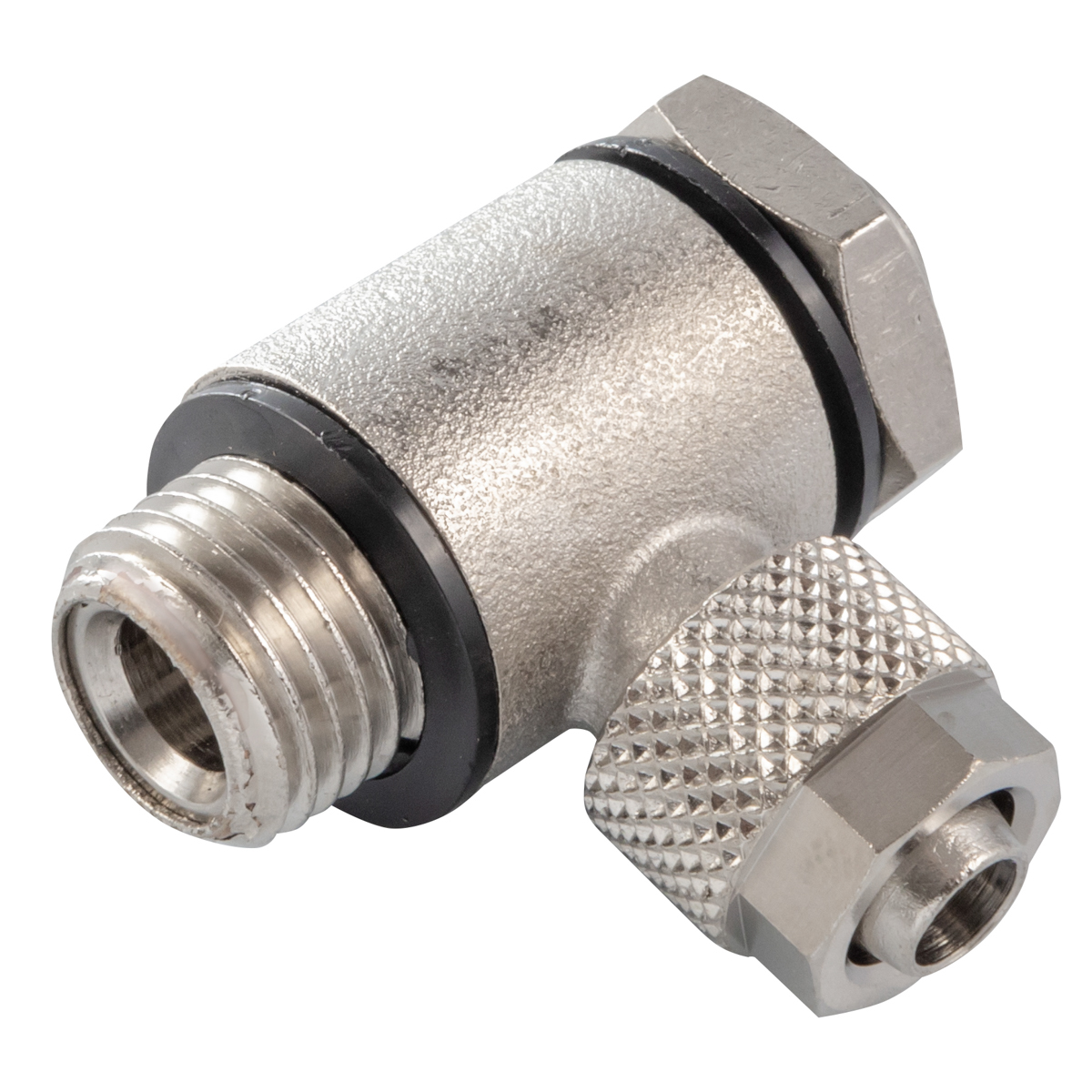 Wersja kątowa (90-stopniowa) ułatwia organizację przewodów pneumatycznych w ograniczonej przestrzeni, a gwint zewnętrzny (np. M5, G1/8, G1/4) pozwala na szybką i bezproblemową integrację z rozbudowaną siecią instalacji. Dodatkowym atutem jest możliwość „skrócenia” instalacji – węże nie muszą się mocno zaginać czy omijać zbędnych przeszkód, ponieważ kątowy kształt zaworu sam zmienia kierunek przepływu powietrza.