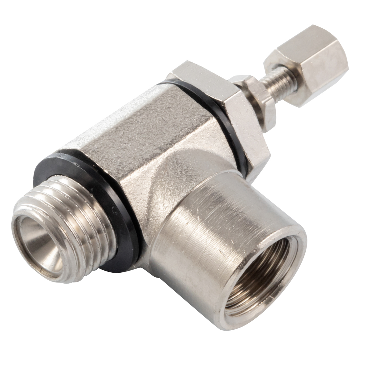 Zawory dławiąco - zwrotne kątowe z podwójnym gniazdem gwintowanym, regulacja pokrętłem typ 80.5082*3