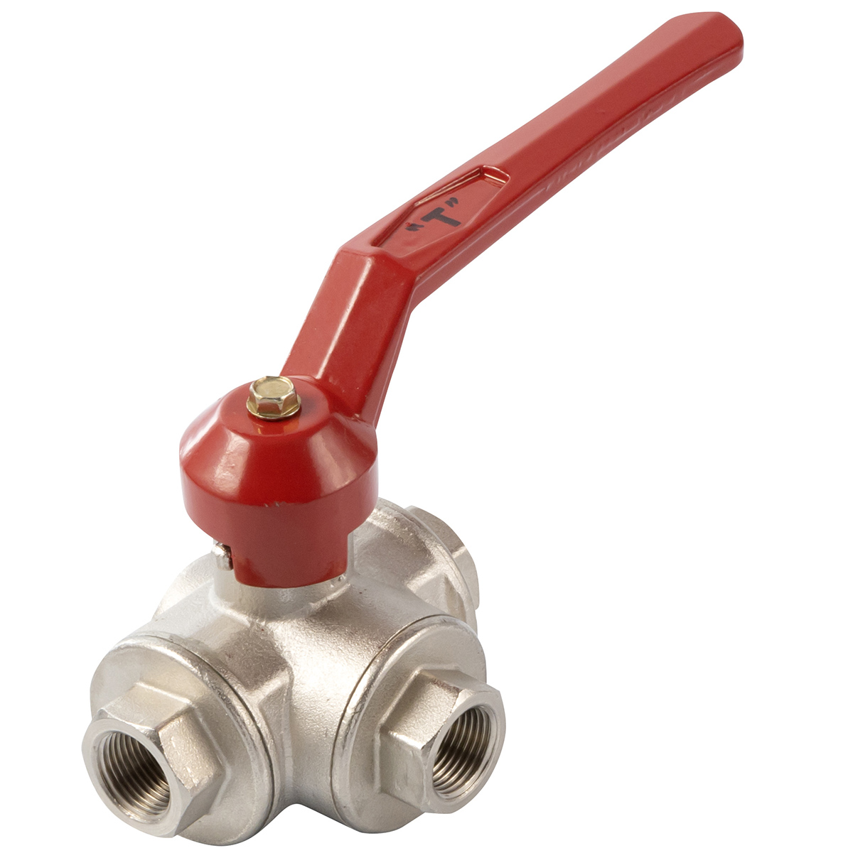 Zawór kulowy trójdrożny typu T, R1/2 GW, mosiądz niklowany /1084C-R/