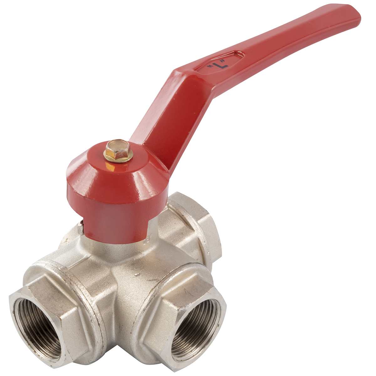 Zawór kulowy trójdrożny typu L, R3/4 GW, mosiądz niklowany
