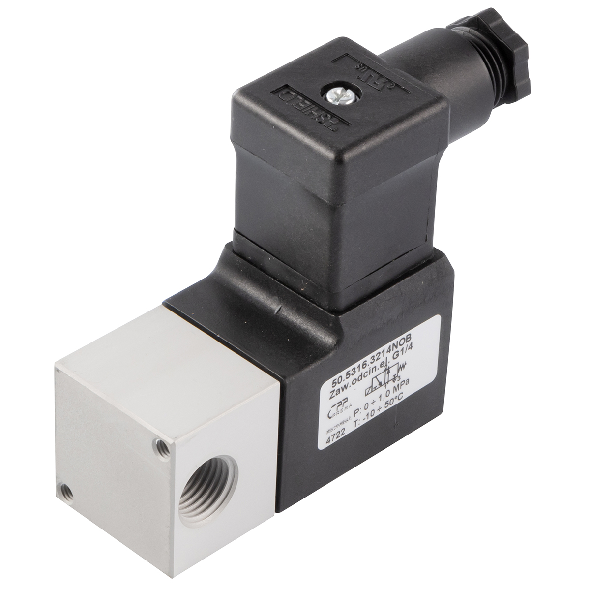 Elektrozawór odcinający FLO 3/2 G1/4, D=1,6 NO normalnie otwarty 0-10 bar, cewka 24V DC