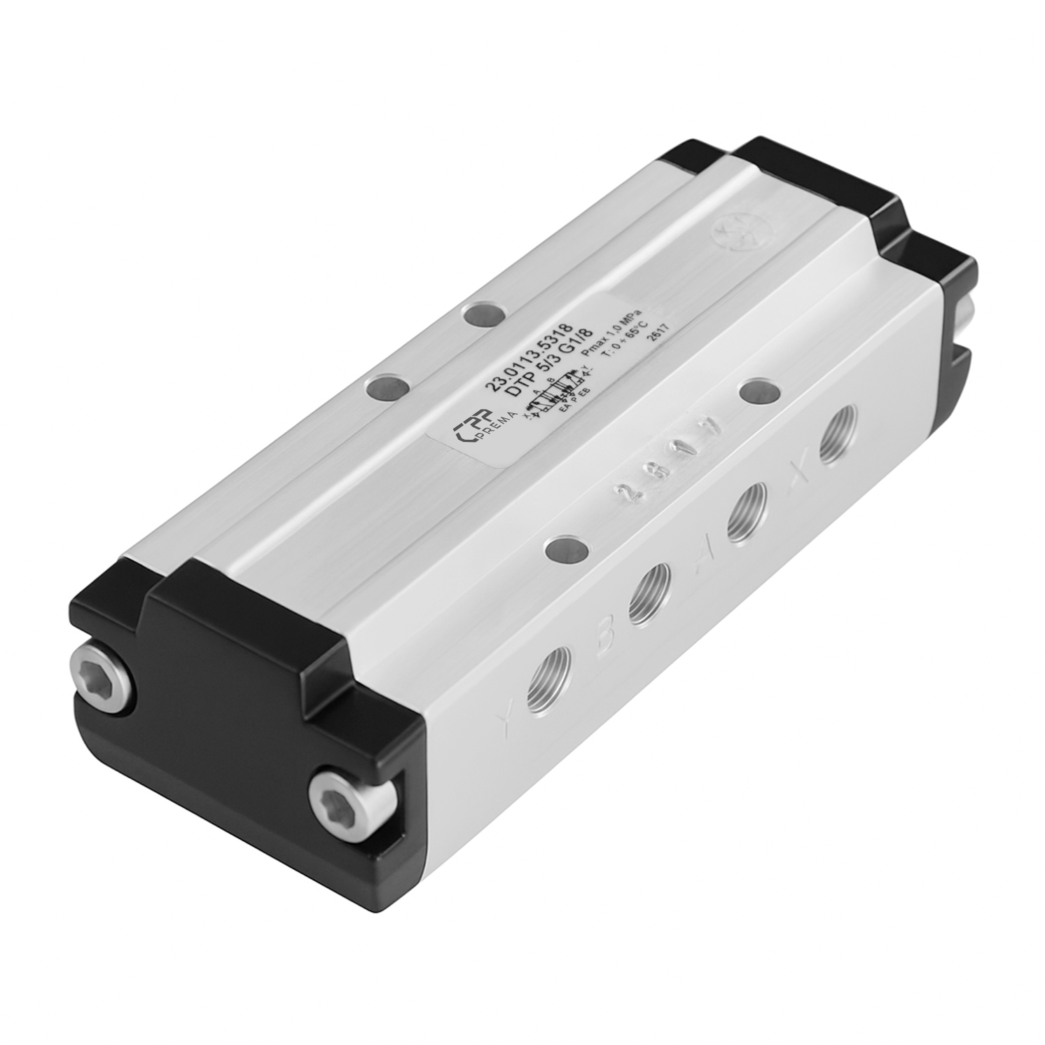 Zawór sterowany pneumatycznie DTP 5/3 G1/8-1/4 CO centralnie otwarty (zasilany płytowo)