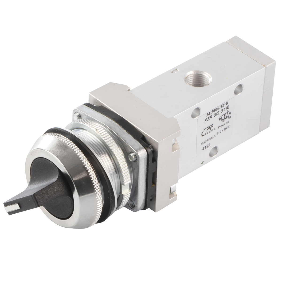 Zawór pneumatyczny rozdzielający ręczny PZR 3/2 G1/8 NZ (NO) z przyciskiem pokrętnym