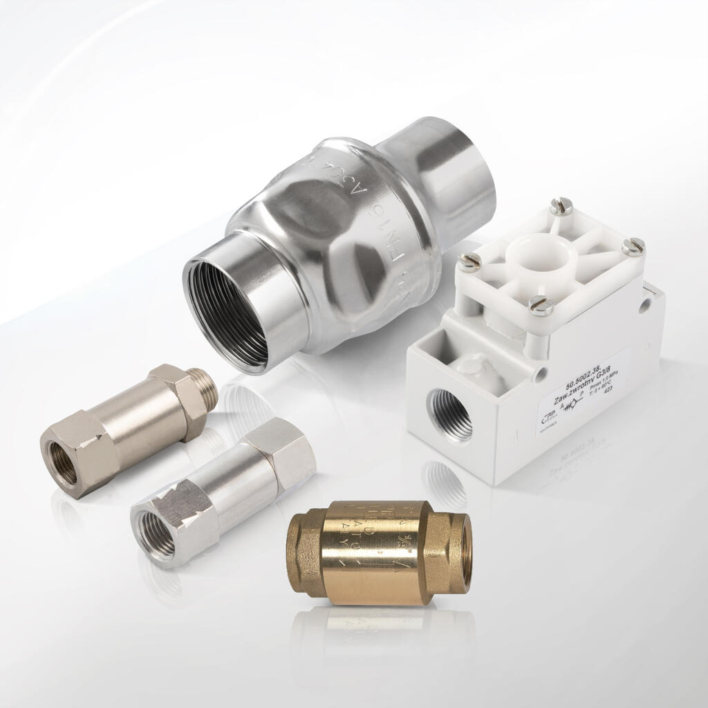 CPP PREMA oferuje zawory zwrotne w trzech głównych odmianach: zawory zwrotne liniowe wtykowe, zawory zwrotne liniowe z gwintem oraz zawory zwrotne z filtrem. Każda linia odpowiada na inne potrzeby użytkowników przemysłowych i półprzemysłowych.