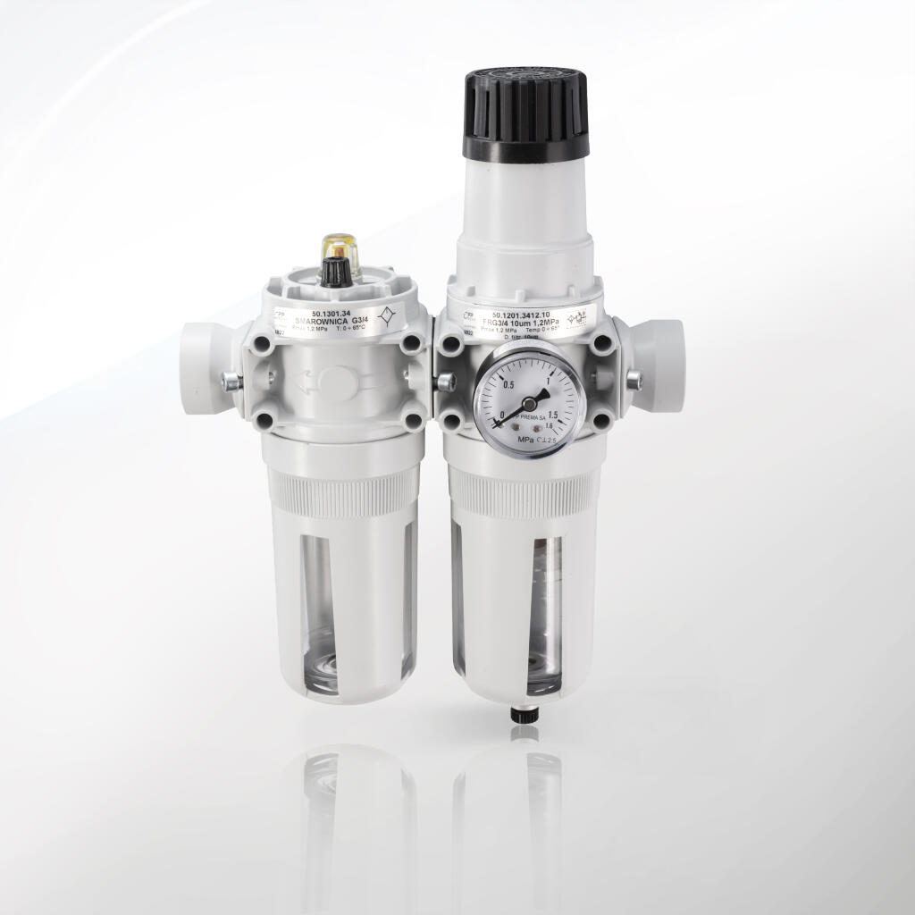 Seria CLASSIC (G1/2"–G3/4") to solidne zespoły o średniej przepustowości, przeznaczone do typowych aplikacji przemysłowych i produkcyjnych. Ich obudowa wykonana z aluminium i pokryta warstwą lakieru proszkowego zapewnia odporność na korozję i uszkodzenia mechaniczne. Dostępne są wersje z filtrami o dokładności 5 µm, 10 µm oraz 40 µm, a także warianty z regulacją ciśnienia od 0,5 do 12 bar.