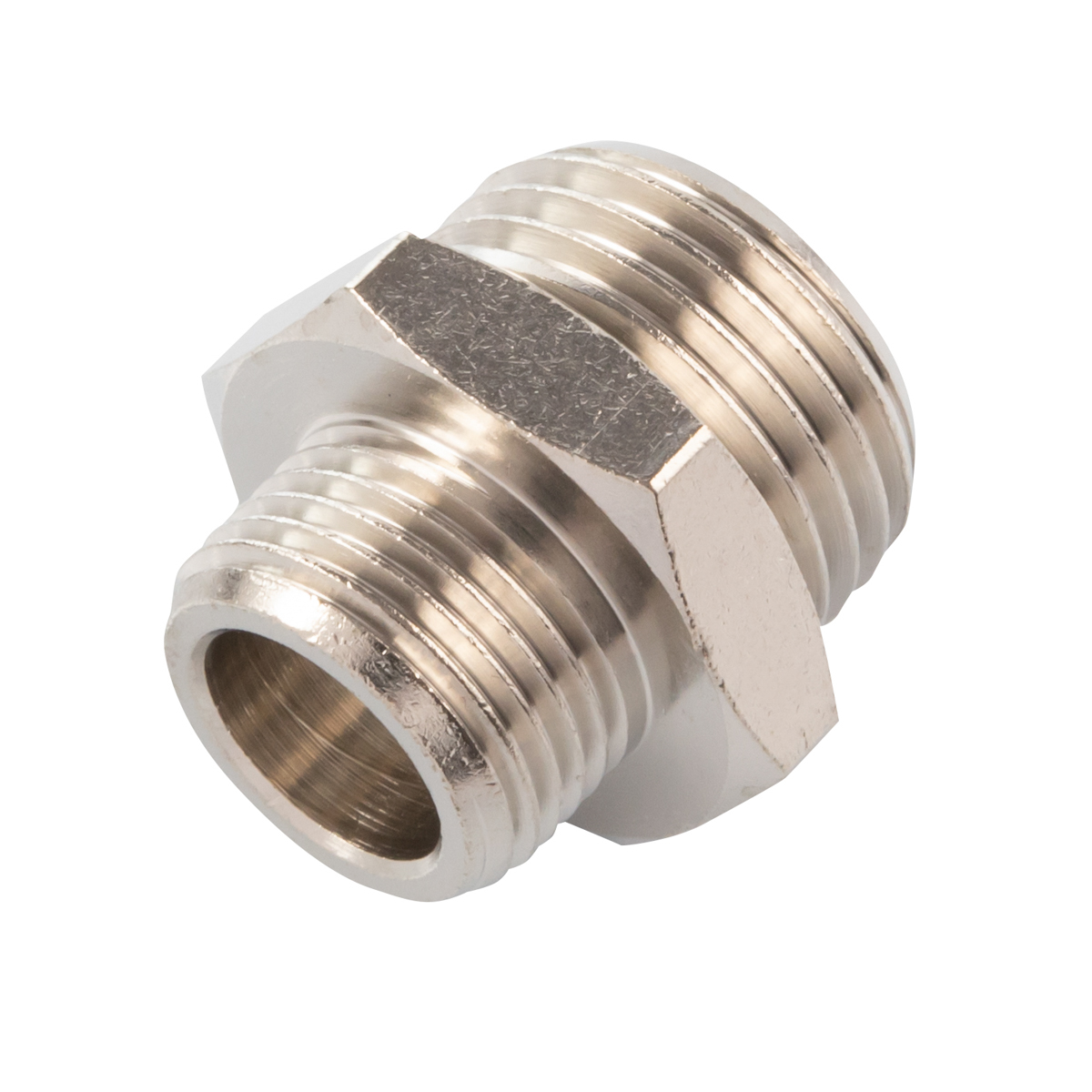 Nypel gwintowany redukcyjny G1/2 GZ - G3/4 GZ redukcja nyplowa, mosiądz niklowany 2030