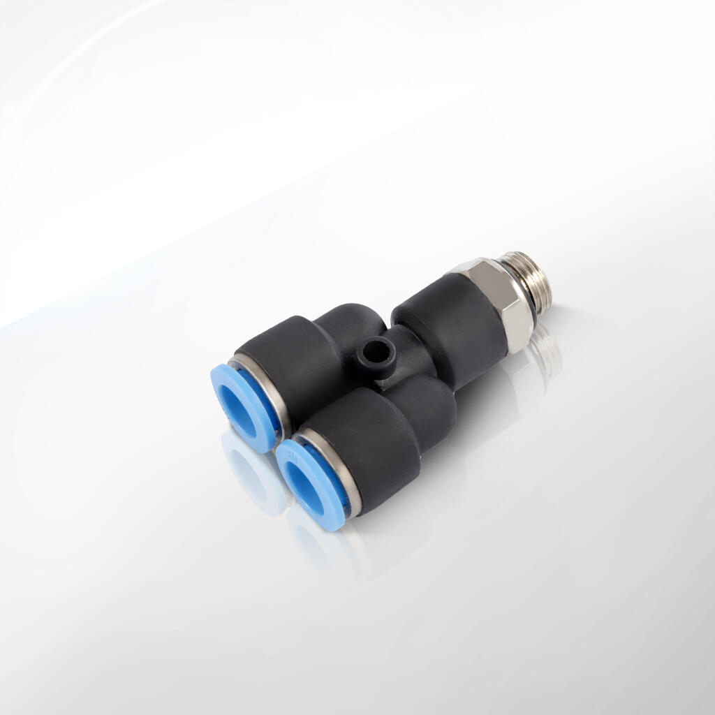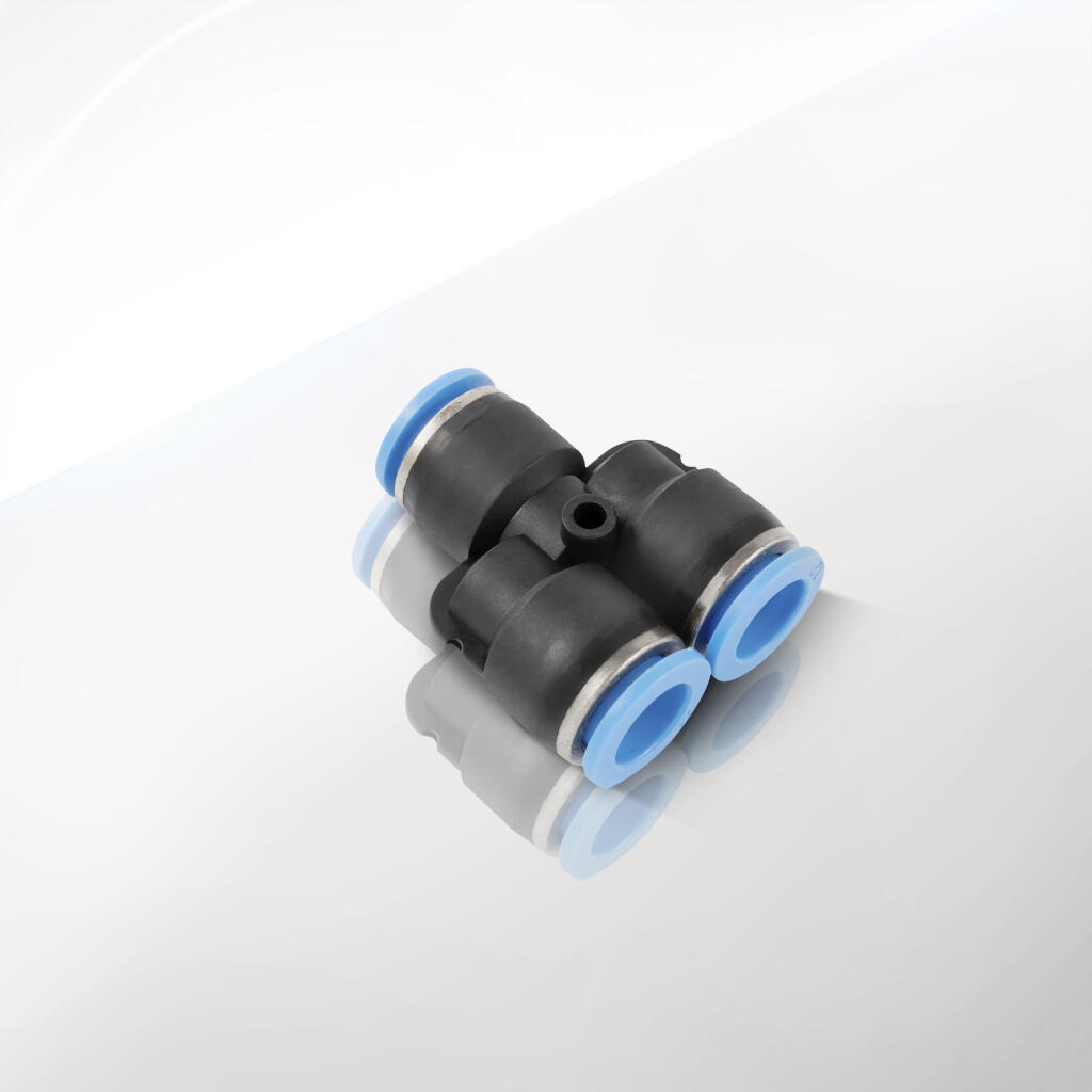 Trójniki typu Y wtykowe (typ 84.0050.12): Rozgałęzienie pod kątem, oszczędzające miejsce w ciasnych układach, np. w kompaktowych maszynach pakujących.