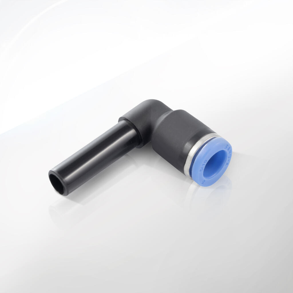 Redukcja do złączek wtykowych kątowych (typ 84.0050.22): Zmiana średnicy w złączkach kątowych, idealna w systemach o zmiennym przepływie, np. z 8 mm na 4 mm w instalacjach laboratoryjnych.