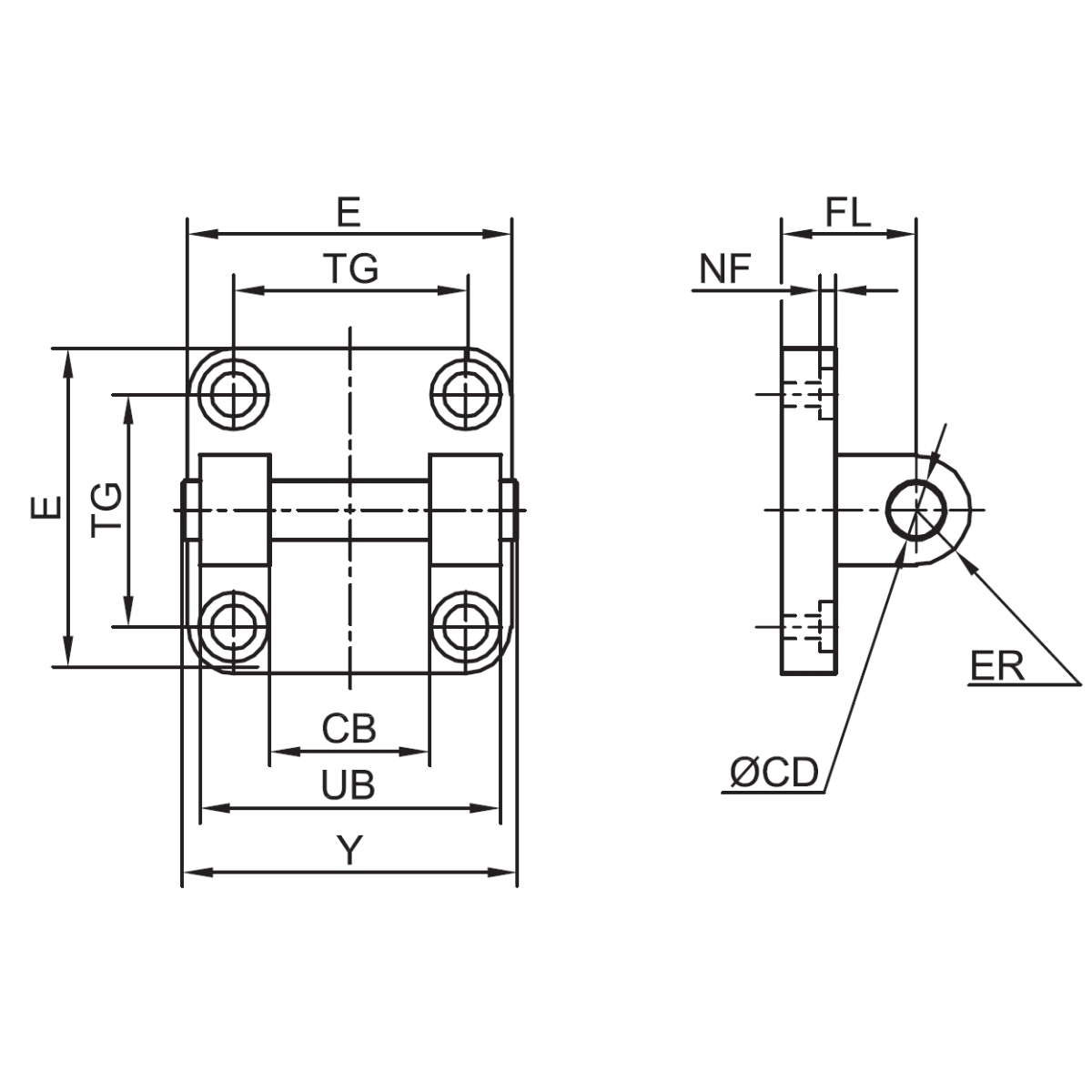 10.014G.02.AC - Widełki ze sworzniem do siłowników pneumatycznych D50 ISO 15552/6432, ISO21287, aluminium