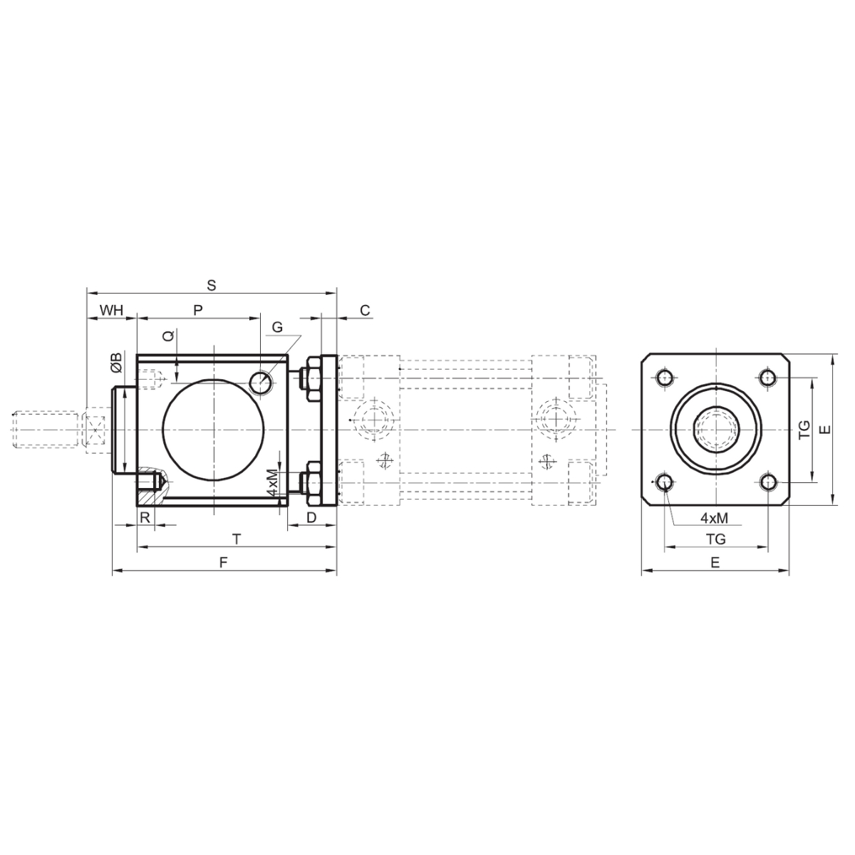 - Siłowniki z wydłużonym tłoczyskiem do montażu blokady tłoczyska i blokady [AB]