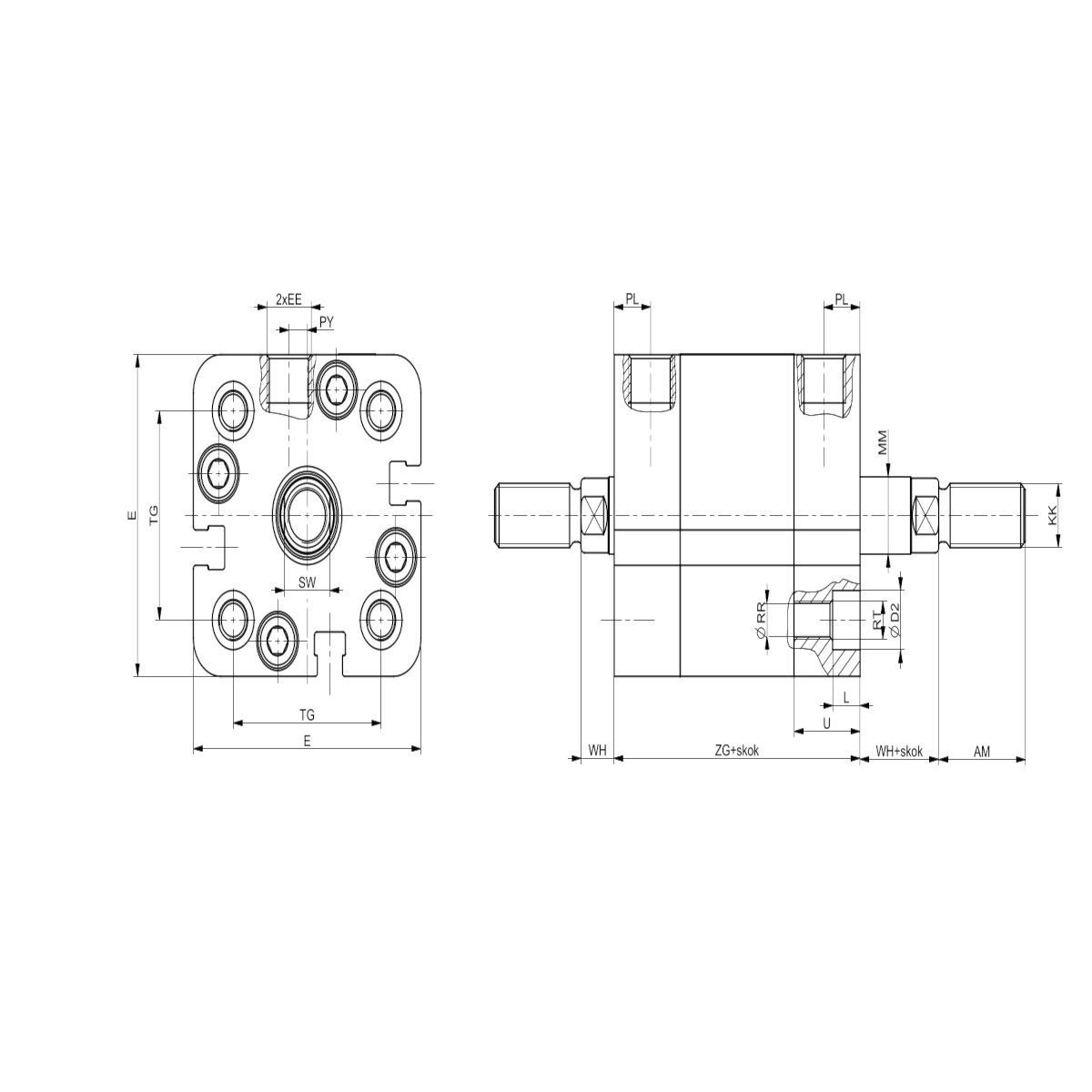 - Seria SKP 041,051 dwustronnego działania z dwustronnym tłoczyskiem