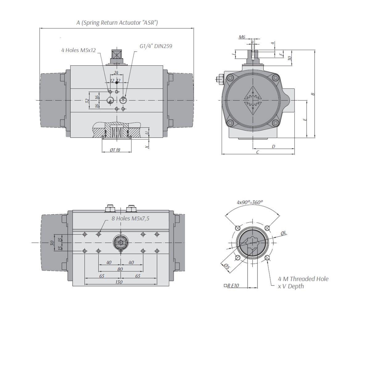 14.ASR1750.F14.R36 - Siłownik obrotowy jednostronnego działania ASR1750, ISO 5211 F14, kwadrat 36 mm