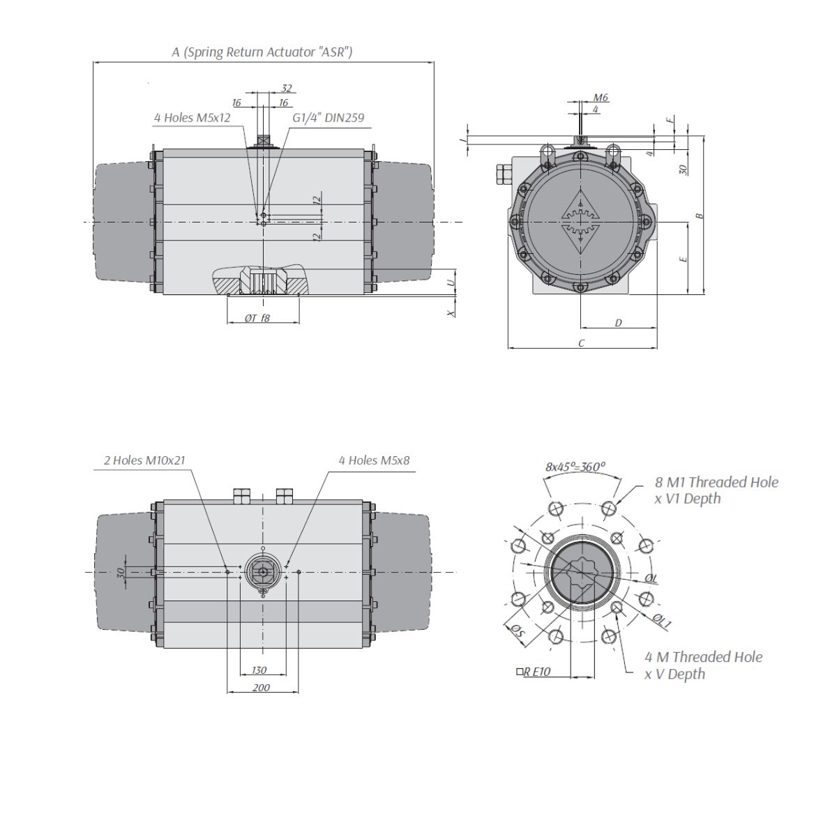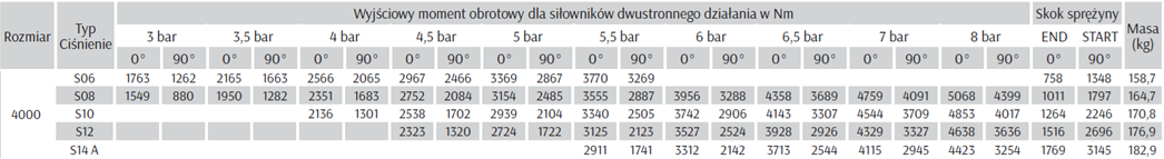 14.ASR4000F16F25.R55 - Siłownik obrotowy jednostronnego działania ASR4000, ISO 5211 F16/F25, kwadrat 55 mm
