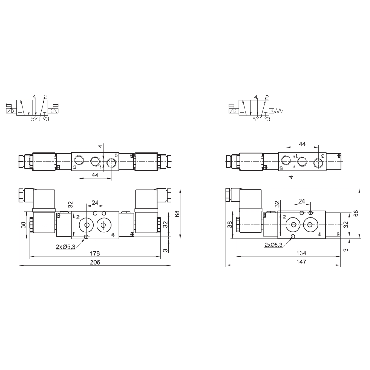 22.0403.5214B - Elektrozawór pneumatyczny ZMG NAMUR 5/2 G1/4 monostabilny, cewka 24V DC