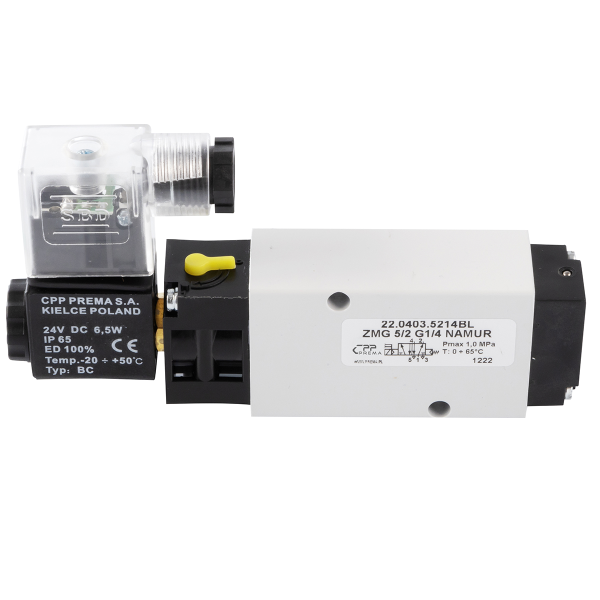 22.0403.5214JL - Elektrozawór pneumatyczny ZMG NAMUR 5/2 G1/4 monostabilny, cewka z diodą LED 230V AC 6,5VA