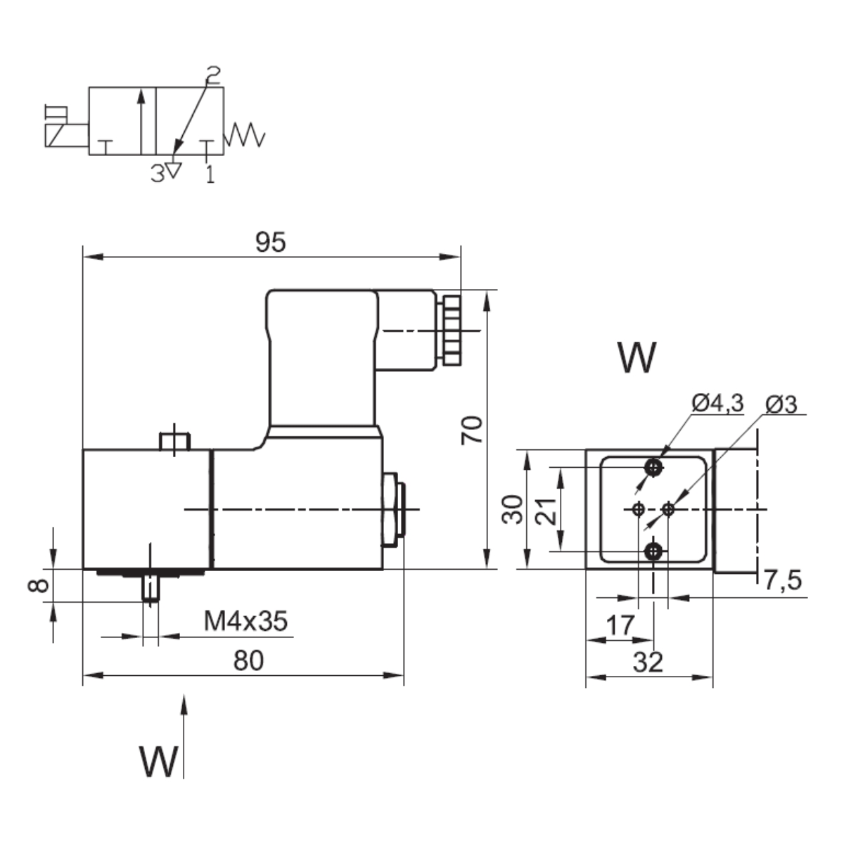 22.0508.32B - Zawór wspomagający MVB 3/2 do elektrozawórow DTE G1/2-G3/4, cewka 24V DC 10W