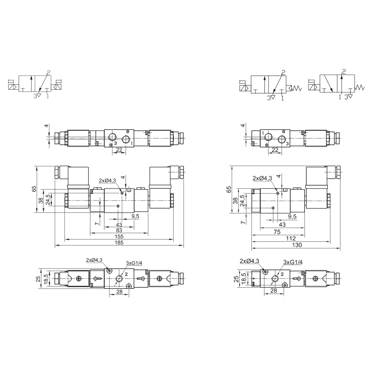 - Elektrozawory 3/2 z dwoma cewkami, bistabilne
