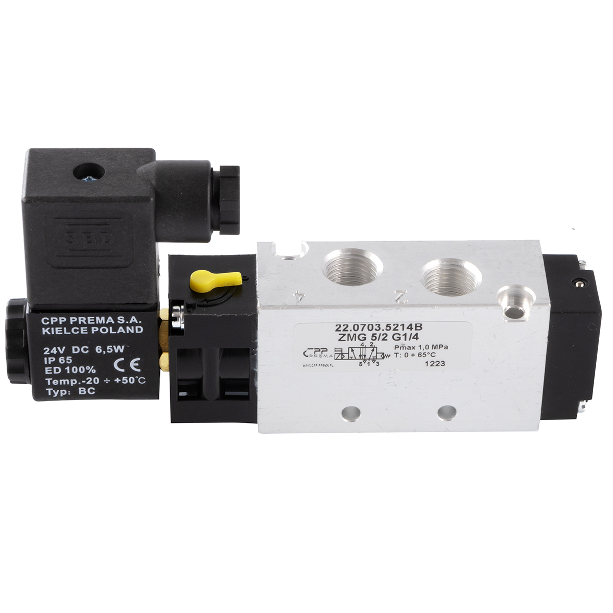 22.0703.5214B - Elektrozawór pneumatyczny rozdzielający ZMG 5/2 G1/4 monostabilny cewka 24V DC 6,5W