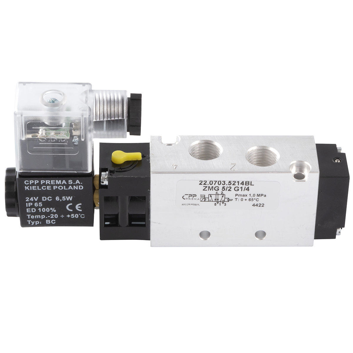 22.0703.5218JL - Elektrozawór pneumatyczny rozdzielający ZMG 5/2 G1/8 monostabilny cewka 230V AC 6,5VA LED
